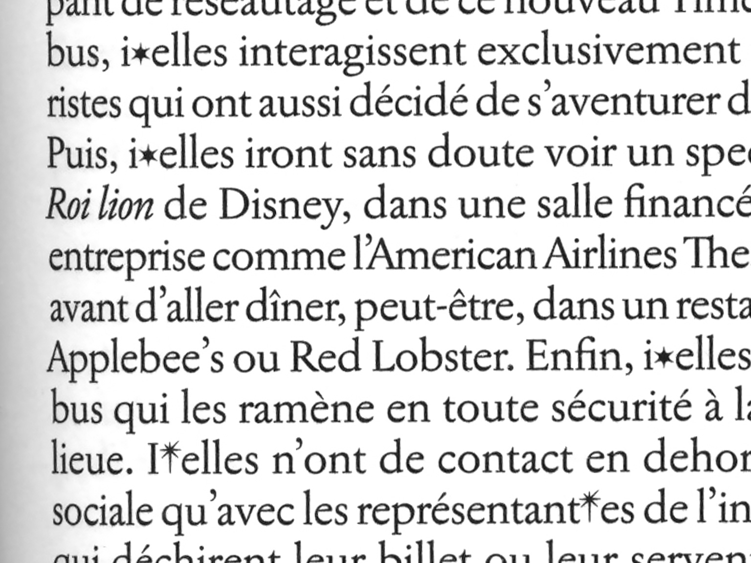 Every publication explores French inclusive punctuation. French grammar traditionally follows a rule where the masculine plural prevails for mixed groups (even if mostly female) rendering women linguistically invisible. The inclusive dot (·) is commonly used as a more equitable sign to denote both male and female versions of a word.