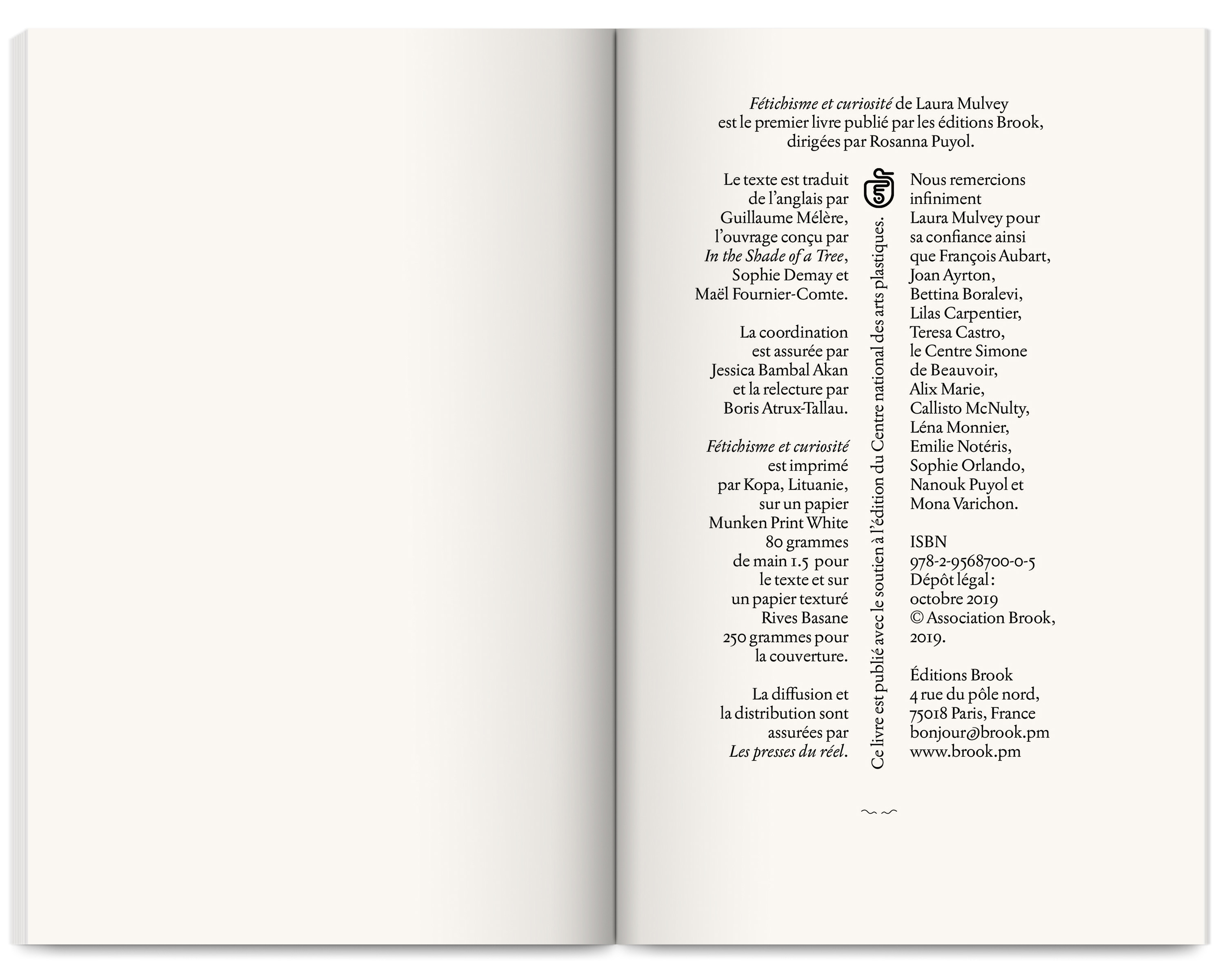 Brook is an independent publisher specialising in hybrid forms of contemporary writing, poetry, essays, fiction, critique, and theory. Led by Rosanna Puyol Boralevi, it focuses on translating into French texts engaged with and nourished by feminism and anti-racism.