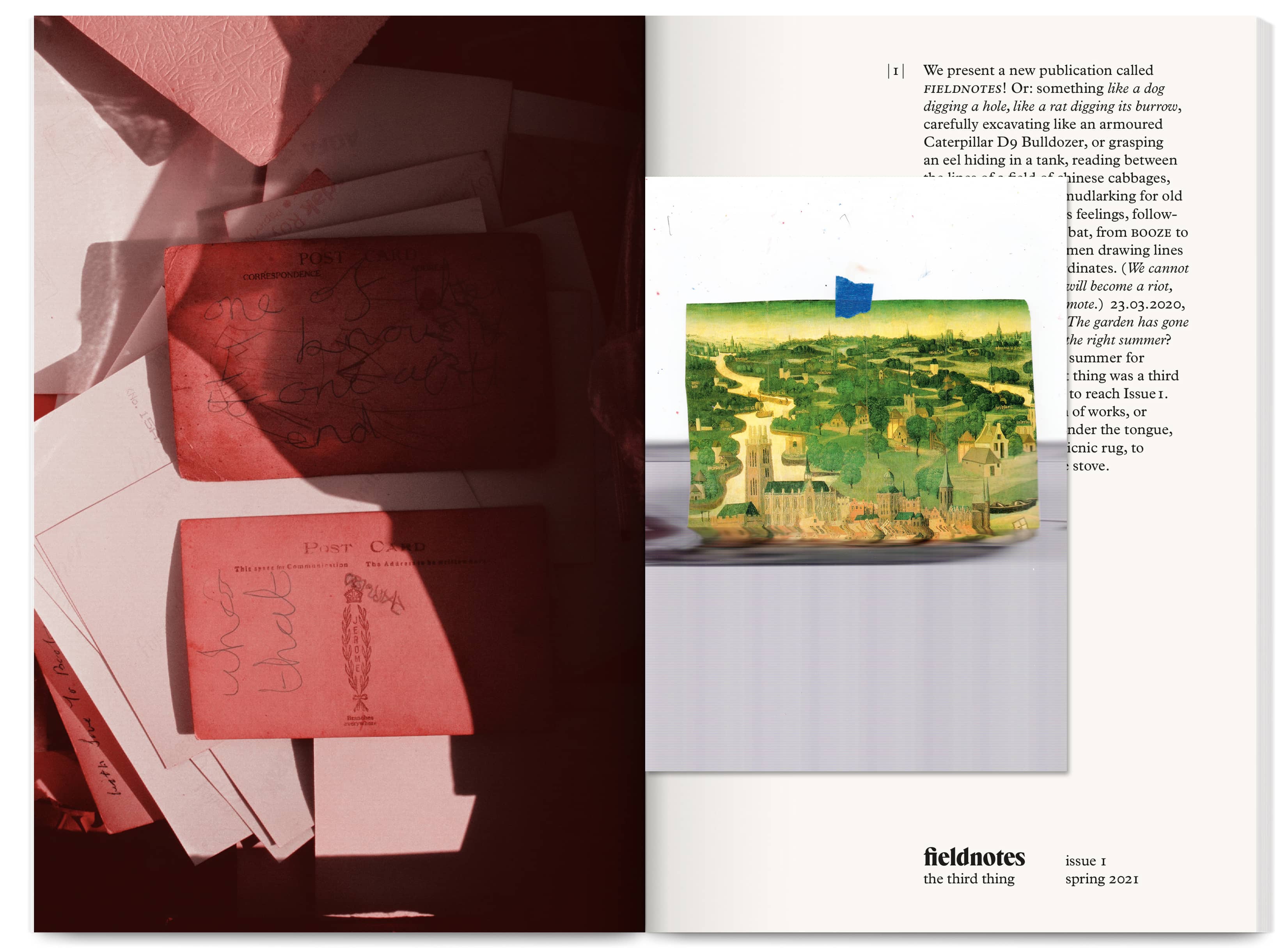 We have art directed the journal since 2021 in collaboration with Bella Marrin and the editorial team. For the logotype and article titles, we collaborated with MAMA Type on a digital interpretation of Times Modern — the typeface designer Willy Fleckhaus used in the 1970s for Suhrkamp Verlag. Special care went into the ‘fi’ ligature within ‘fieldnotes’.