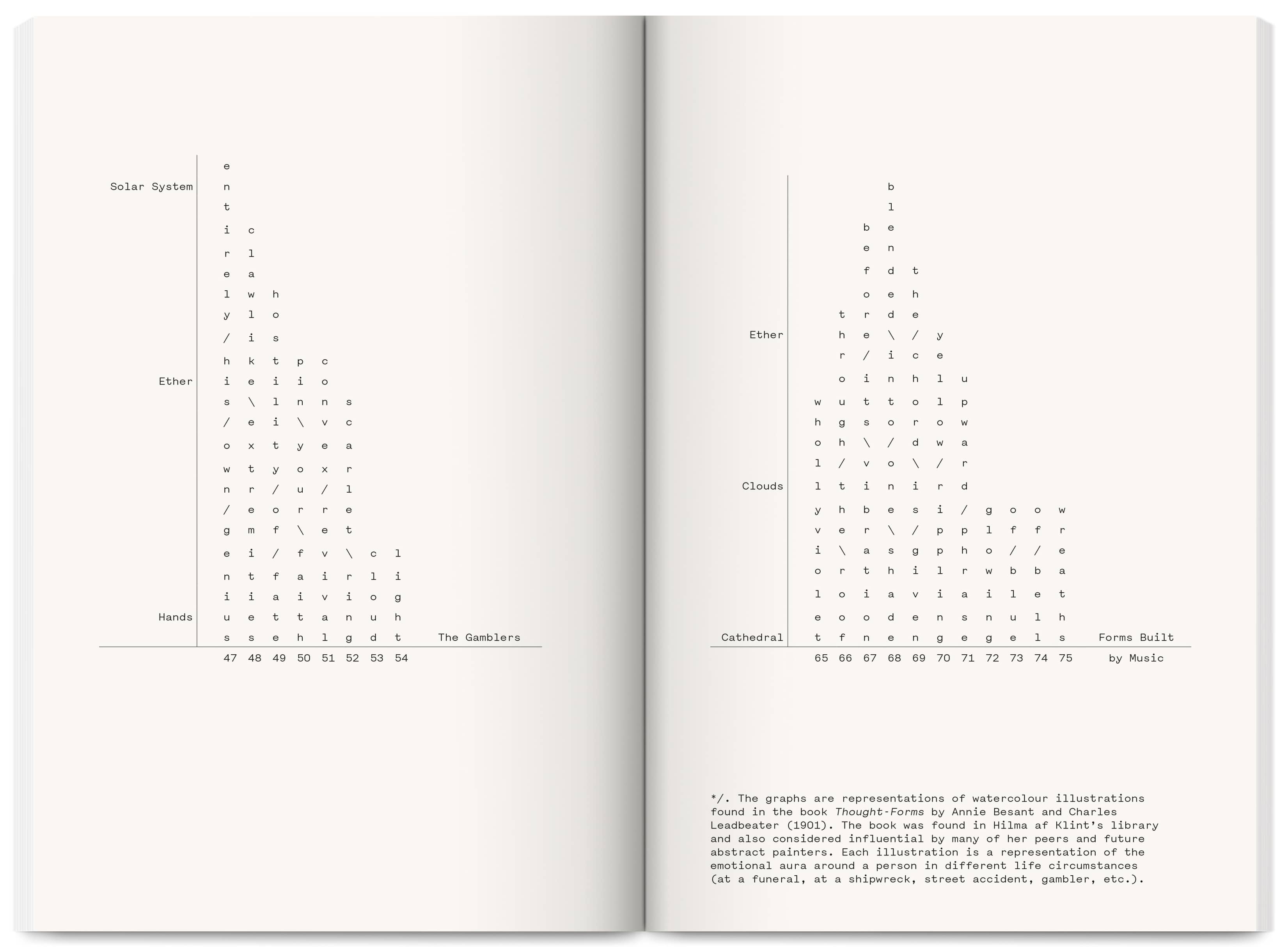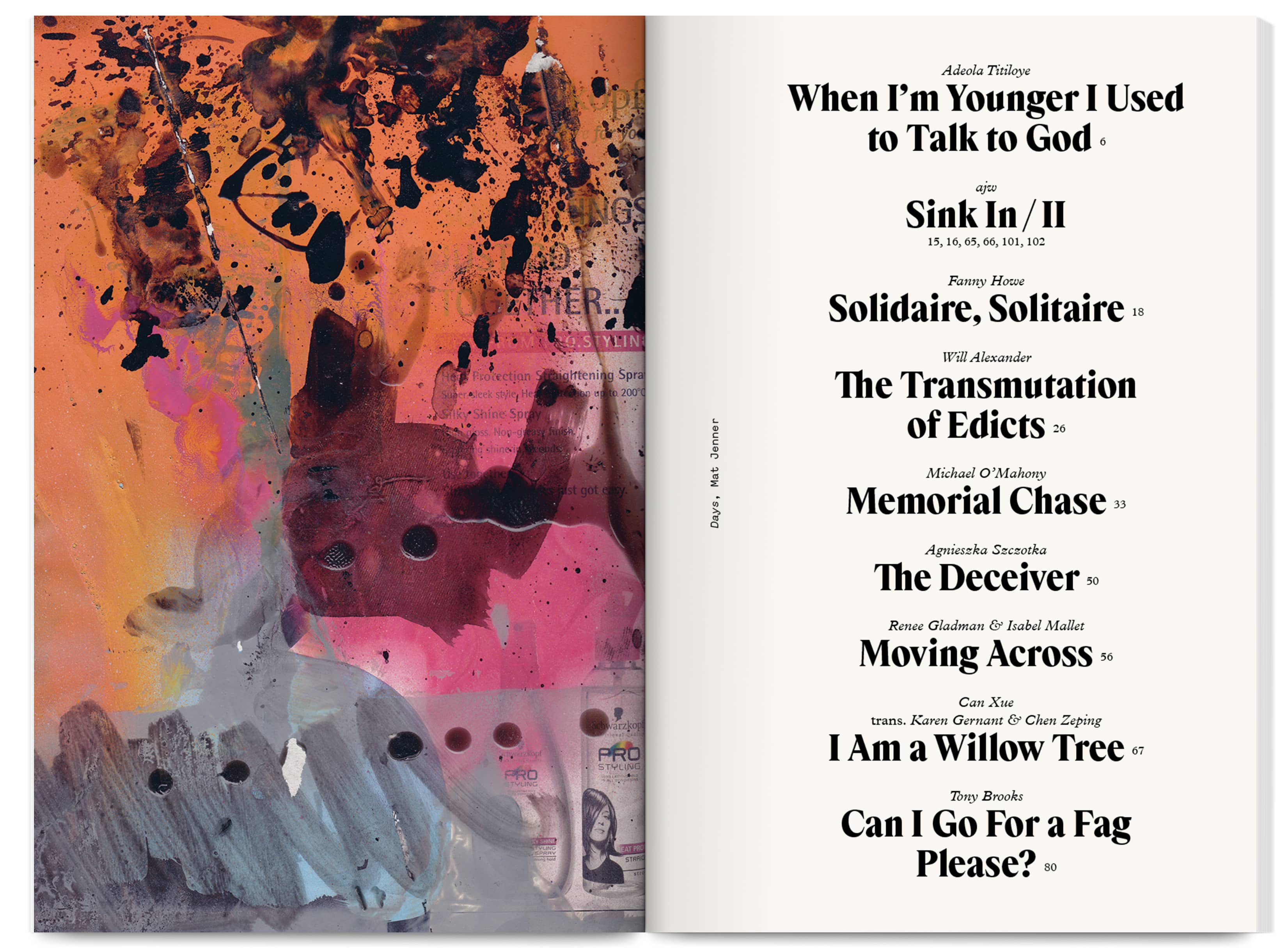 Publications form annual duos spanning two years, with colours responding to each other. Each journal’s margins shift from left to right, reflecting the malleability and materiality of language.