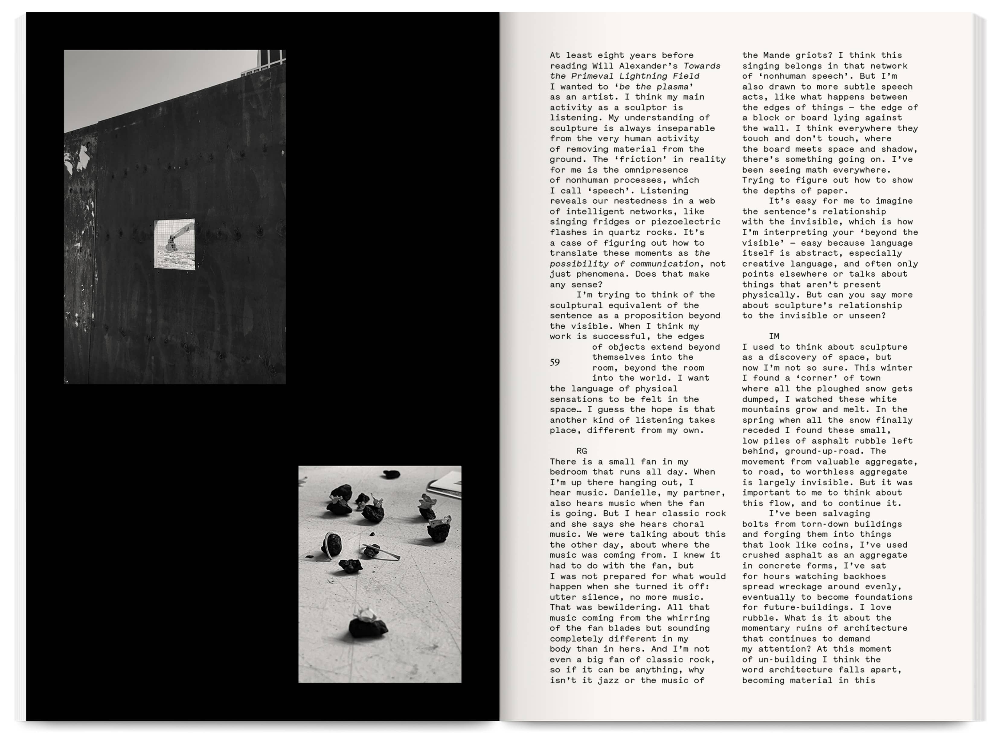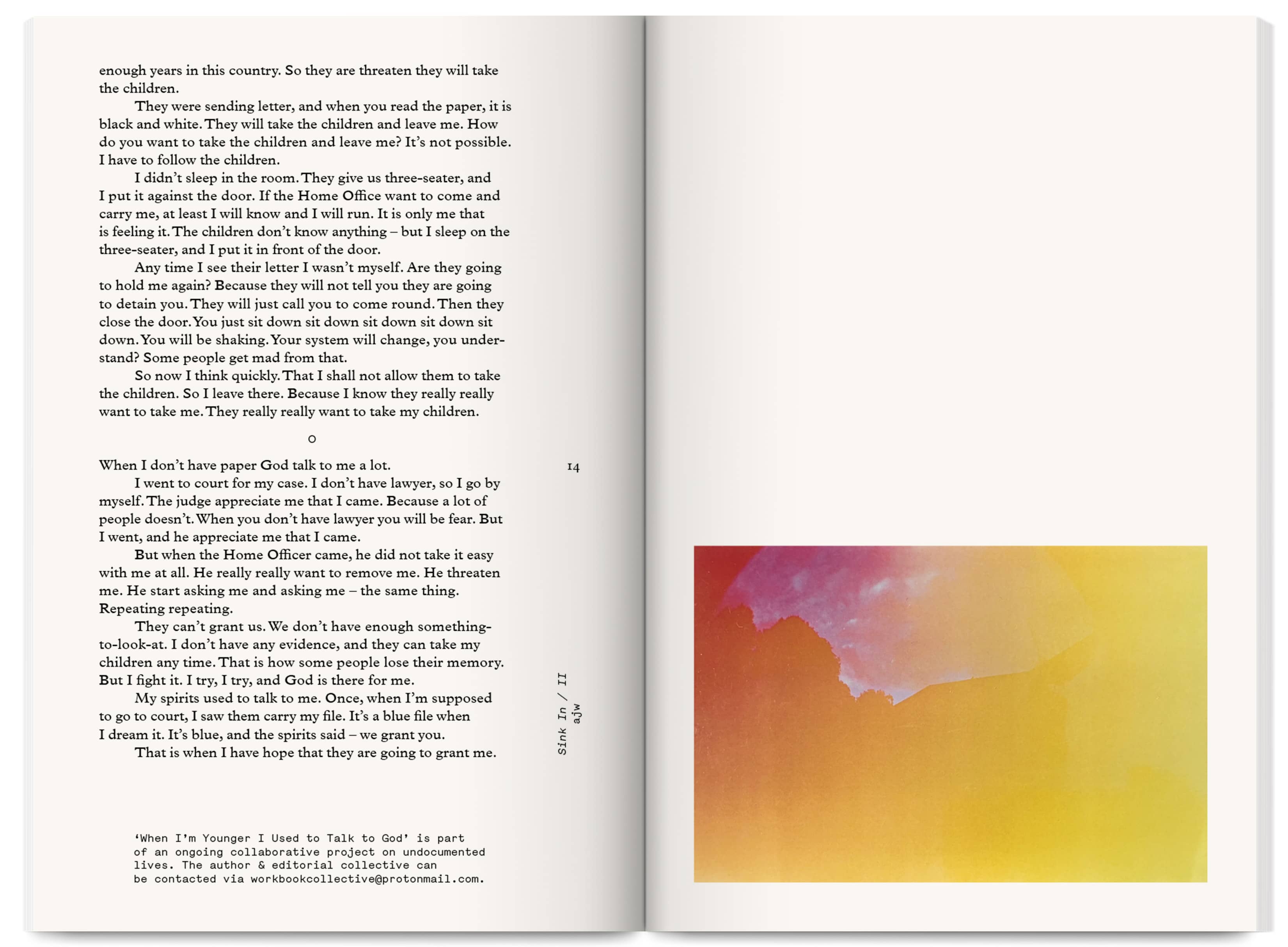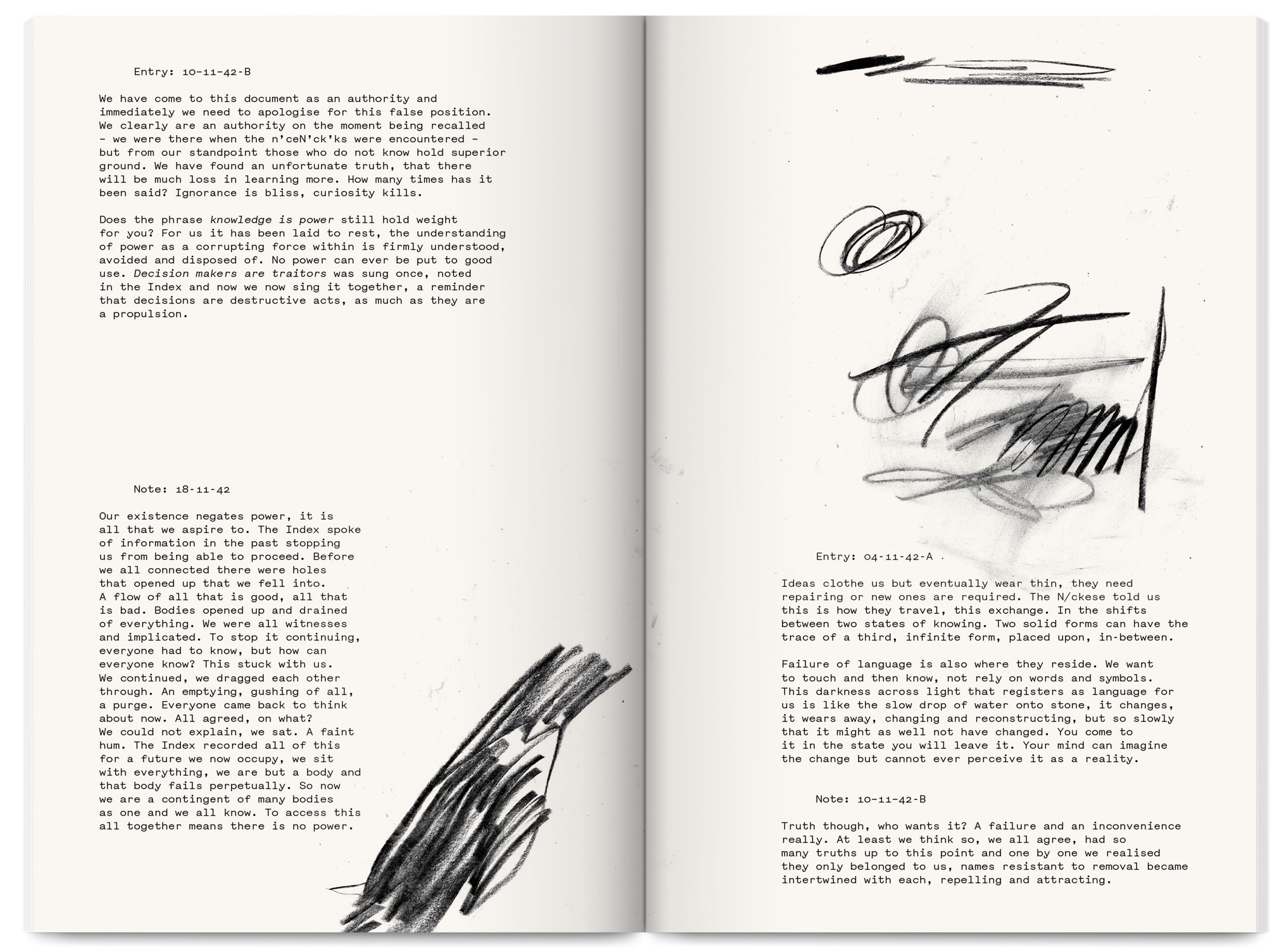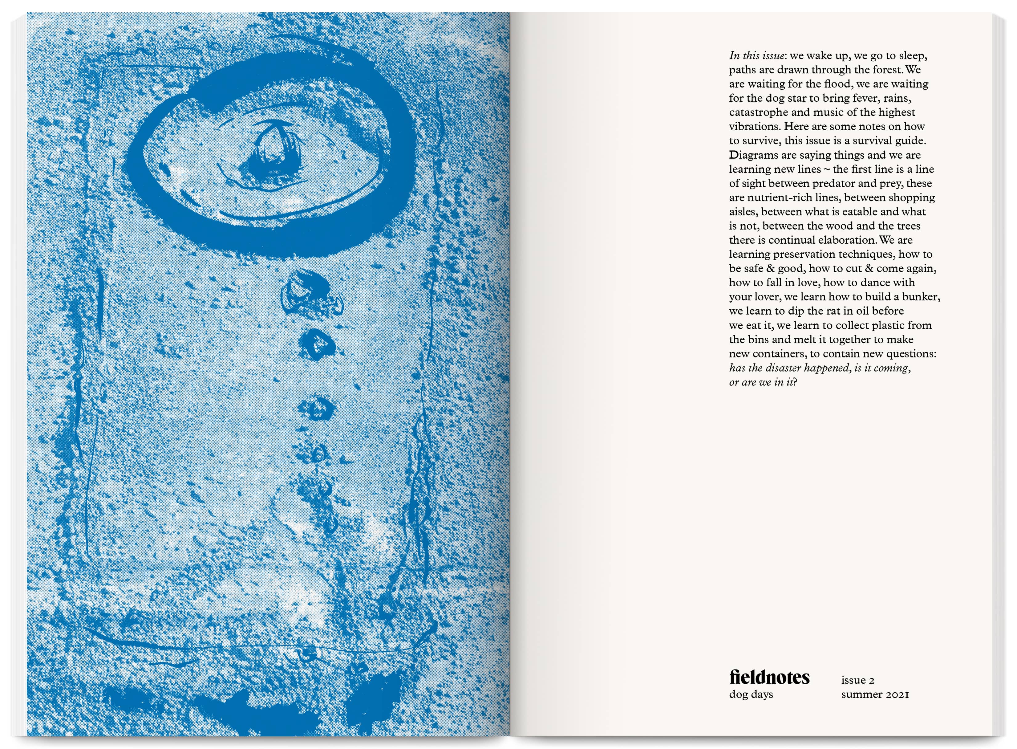 Fieldnotes is an East London artist-run publishing project producing an annual print journal and public programme of workshops, mentoring, radio, screenings and readings. It promotes non-conforming creative practices that challenge arts inequalities, supporting new voices, interdisciplinary experimentation and the “third thing” between known forms — the spaces between translations and transitions.