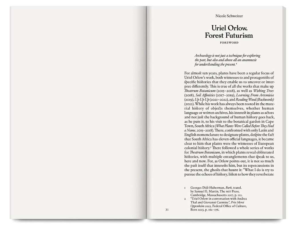Forest Times brings together two major recent projects by artist Uriel Orlow, Reading Wood (Backwards), 2022, and Forest Futurism, 2024, in which plants are simultaneously political actors, witnesses to the past and guides for the future.