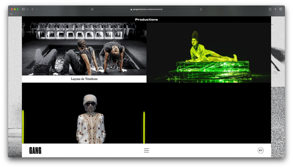 Our visual identity for the company is rooted in the ever‑evolving composition of the four letters G A N G. Treated as a dynamic performance on the page, each letter is in constant motion: restless, displaced and complex. This perpetual transformation reflects the spirit and ambition of the project, as articulated by Betty in her manifesto: