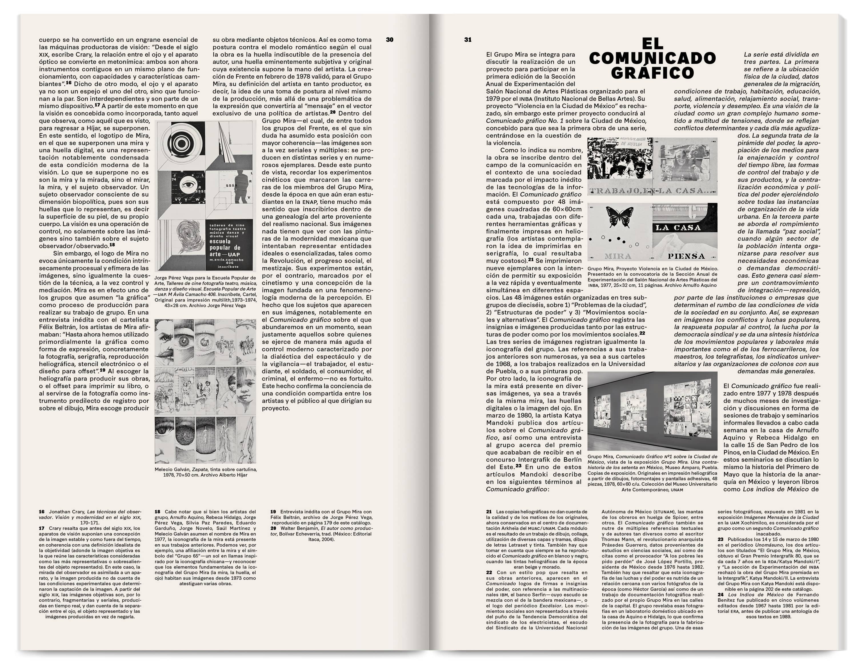 Grupo Mira, A Counter‑History of the Seventies in Mexico tells the story of a group of artists of the Mira Group, a collective of artists active between 1965 and 1982, including Arnulfo Aquino, Melecio Galván, Eduardo Garduño, Rebeca Hidalgo, Silvia Paz Paredes and Jorge Pérez Vega. The exhibition presents the group’s artistic production and critical potential, contributing to a history of the 1970s in Mexico. Seeking to redefine political art beyond the stereotypes of “committed” art, the group addressed both workers and specialised audiences through muralism, political graphic art, and at the same time, the neo-avant-garde, conceptualism and institutional criticism.