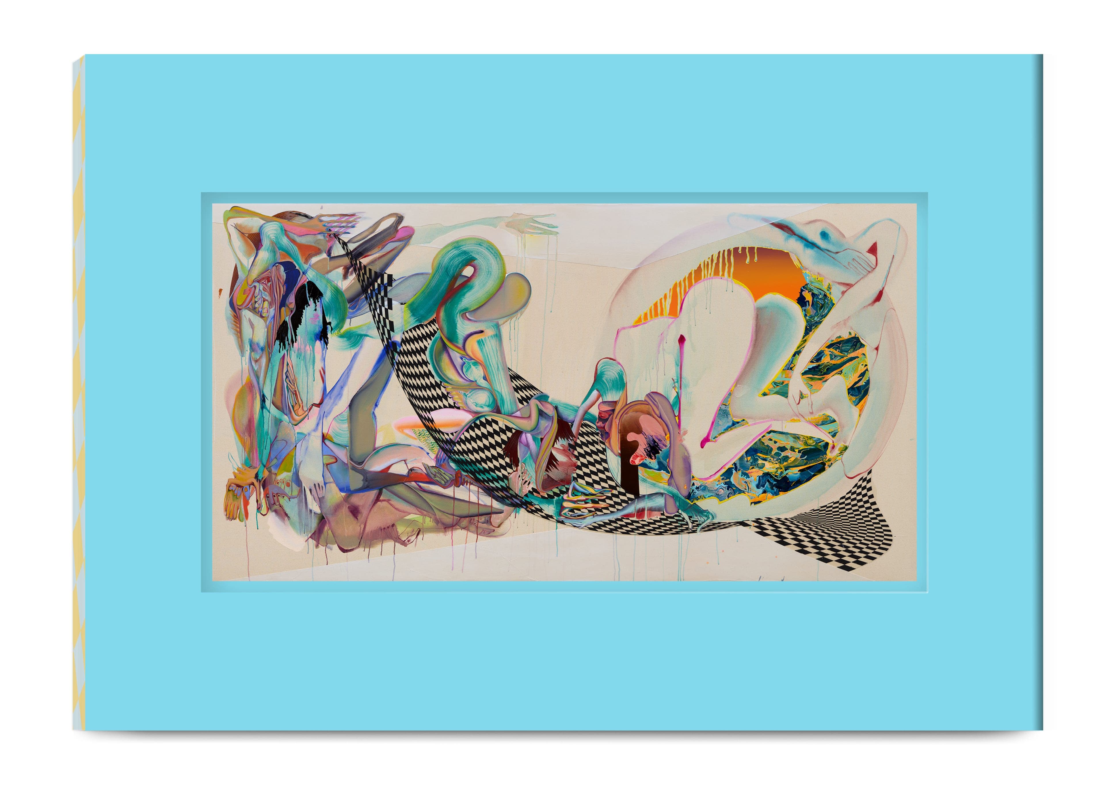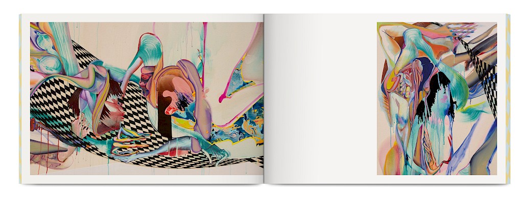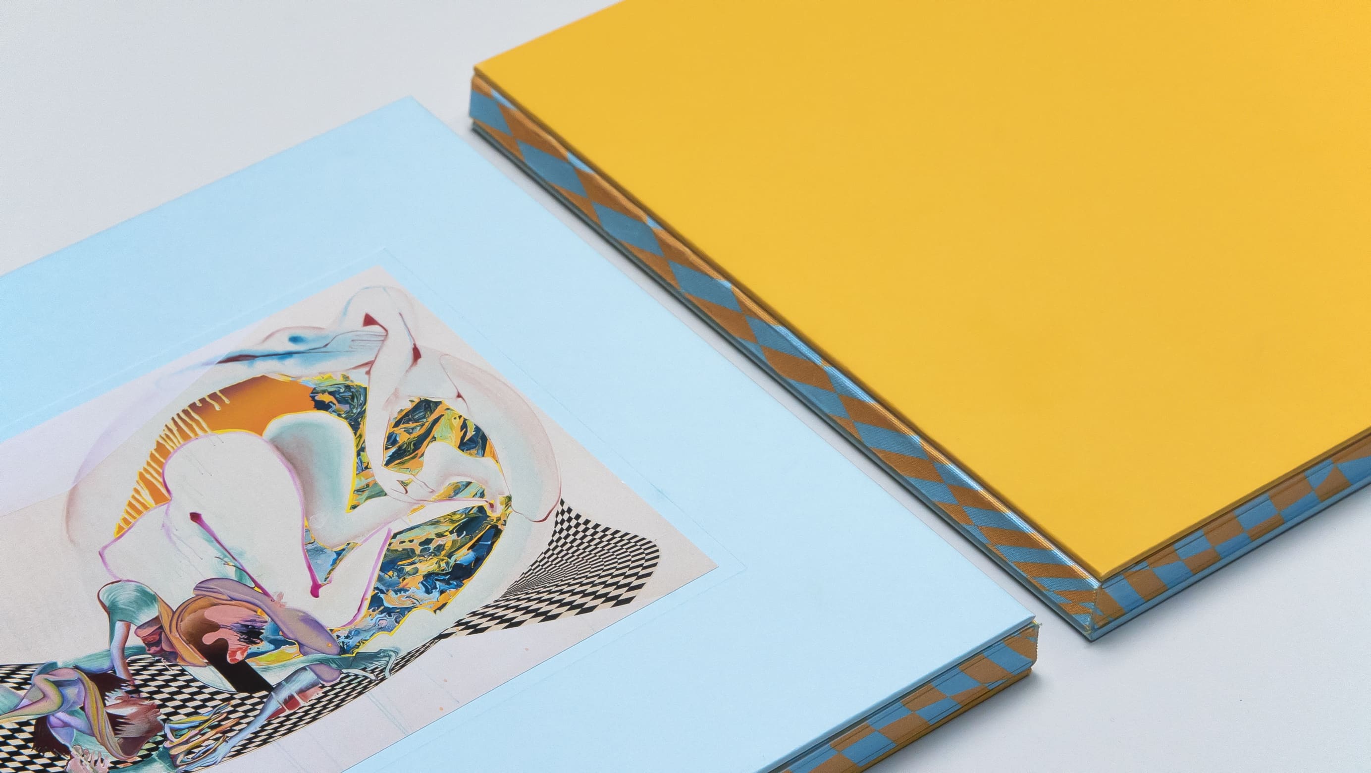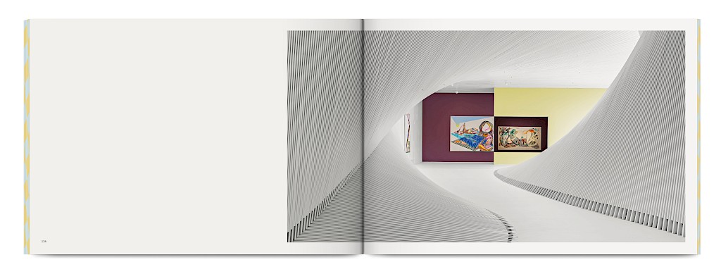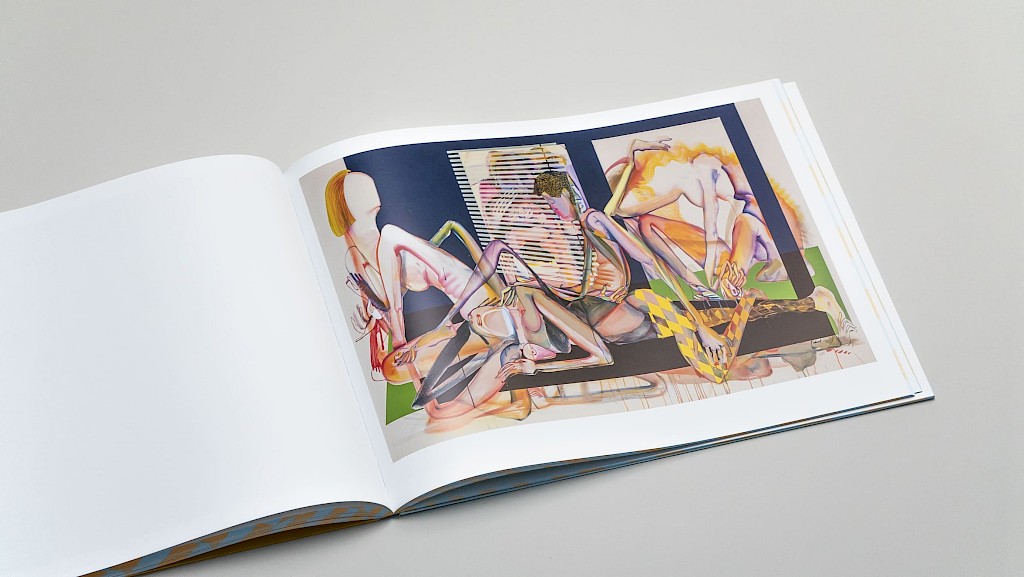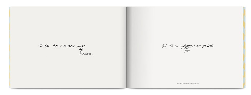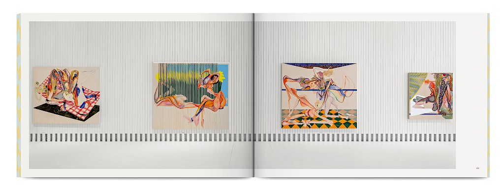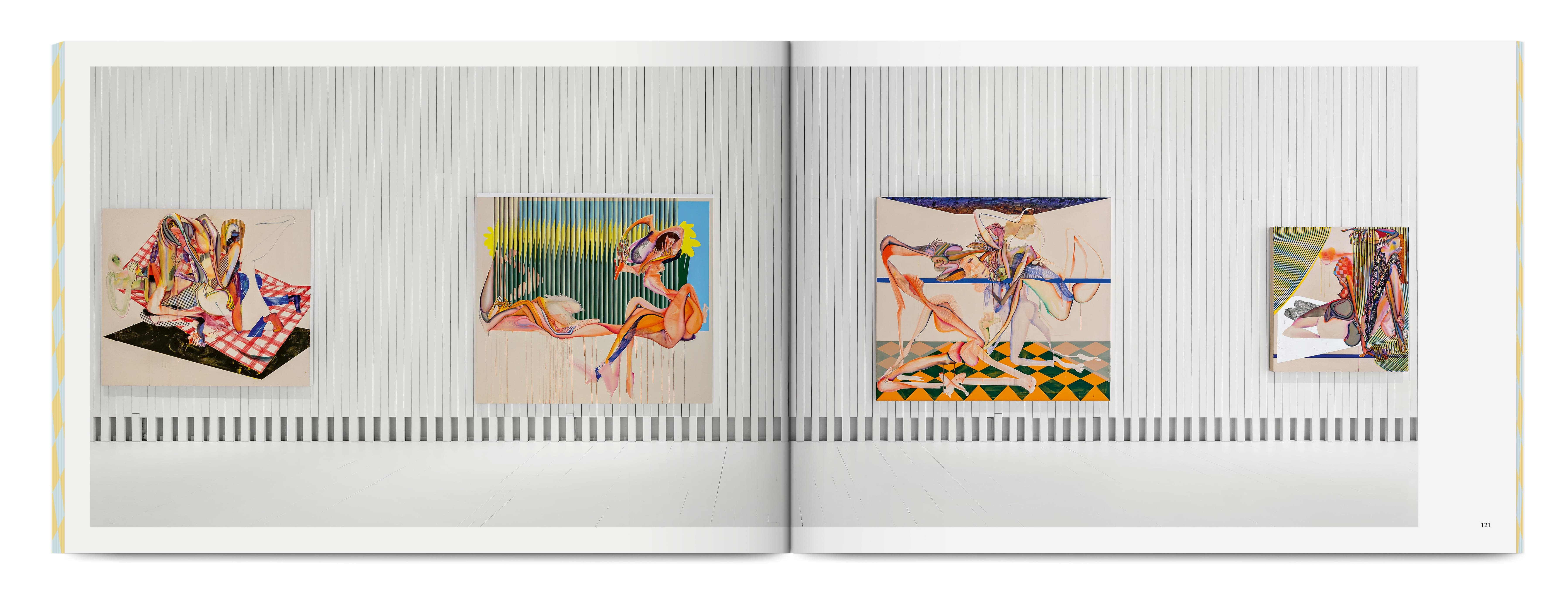 For the catalogue of Christina Quarles’ exhibition Living in the Wake at Kistefos Museum in Norway, we created an object that plays with the expectation of what a traditional book-object should look like. The four edges of the catalogue are printed with a continuous pattern taken from Christina’s recent painting Eddy, creating an ambiguity about which side holds the spine. The landscape orientation purposefully steers the viewer into an immersive experience of the often wide paintings and installation views.