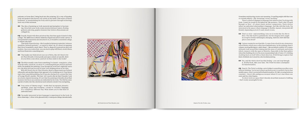 ‘Quarles is widely celebrated for her fluid, dynamic figuration that grapples with the instability of identity and the complexity of embodiment. Her work challenges the boundaries of legibility and representation, creating spaces where the self can be fragmented, overlapping, and constantly remade. As the artist notes, “There [are] these larger overarching narratives of the work about what it is to be in a body, what it is to move through the world in a body, what it is to contend with wanting to have people be able to immediately read you, but then having parts of yourself that contradict that legibility or undermine that experience.”’ (Kate Smith)