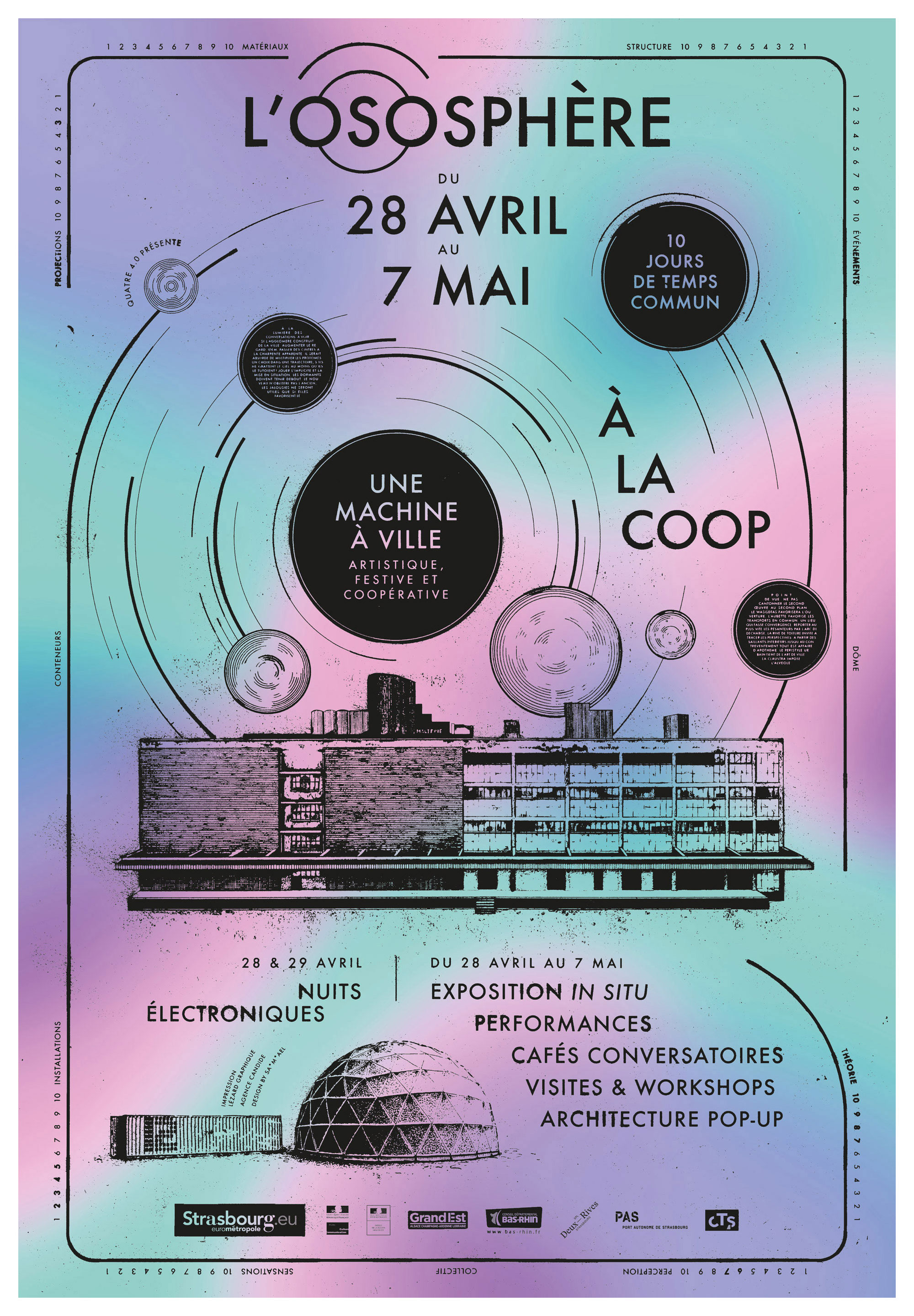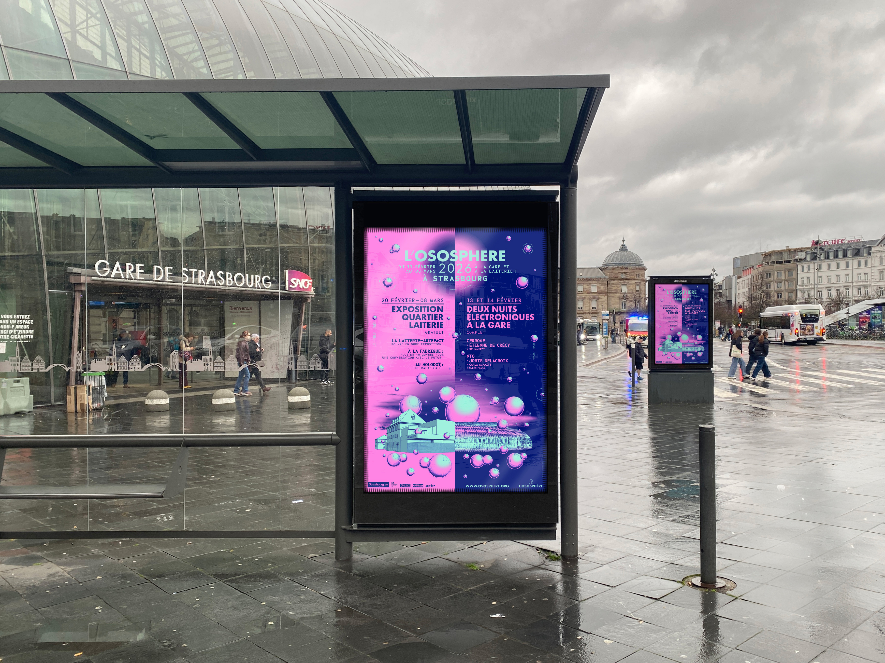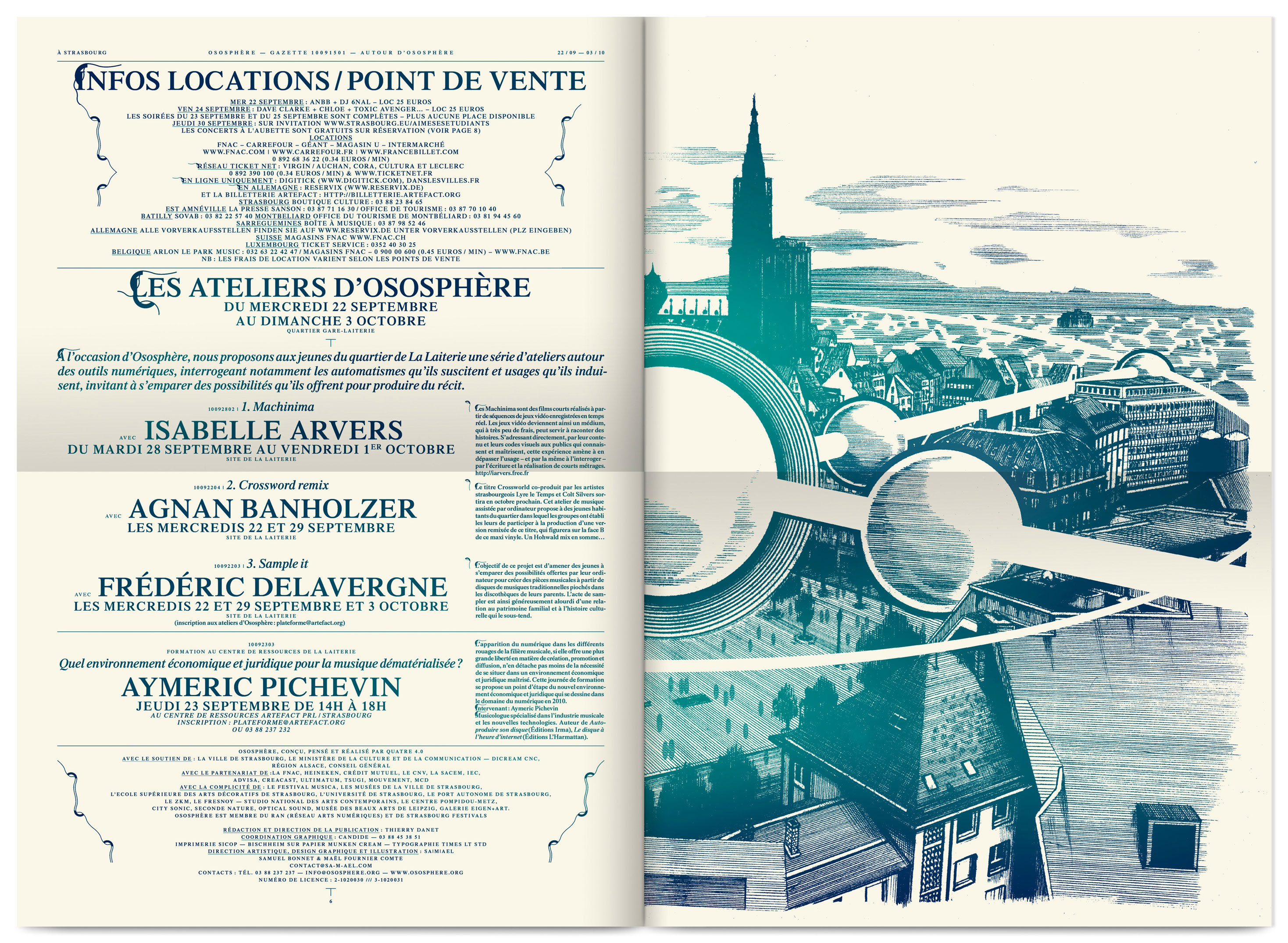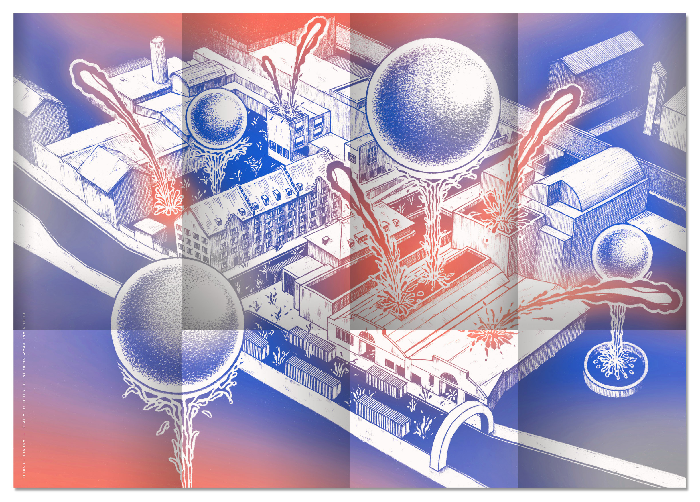 L’Ososphère is a Strasbourg-based festival bringing together electronic music and digital art for thirty years. We have been art directing the festival’s identity since 2010. This long lasting relationship has led to the production of numerous drawings of the various locations where the festival has taken place. We see this gesture both as a recording of a mutating city and its urban landscape, and as a manifestation of its multiple activations by the artists, the visitors, the residents.