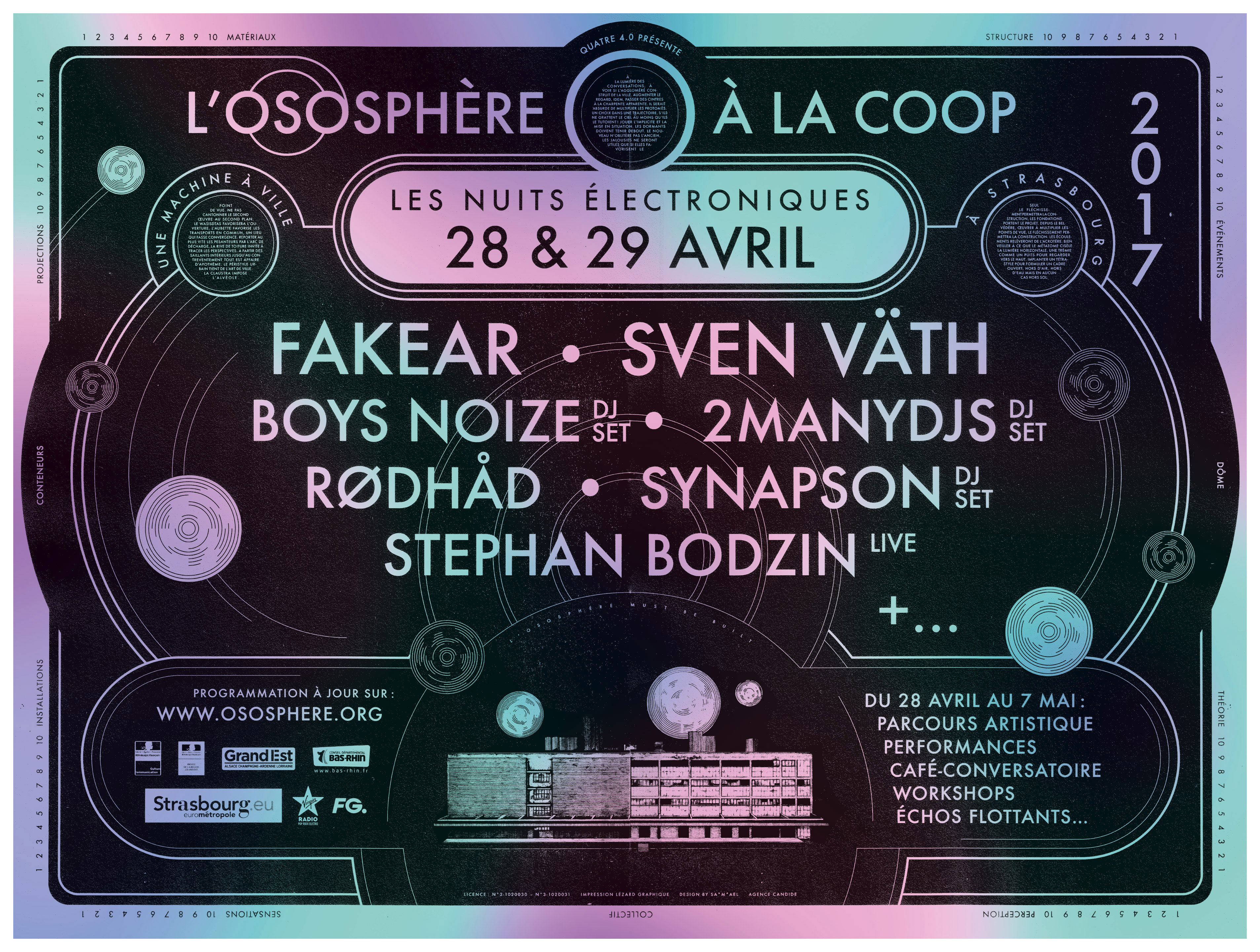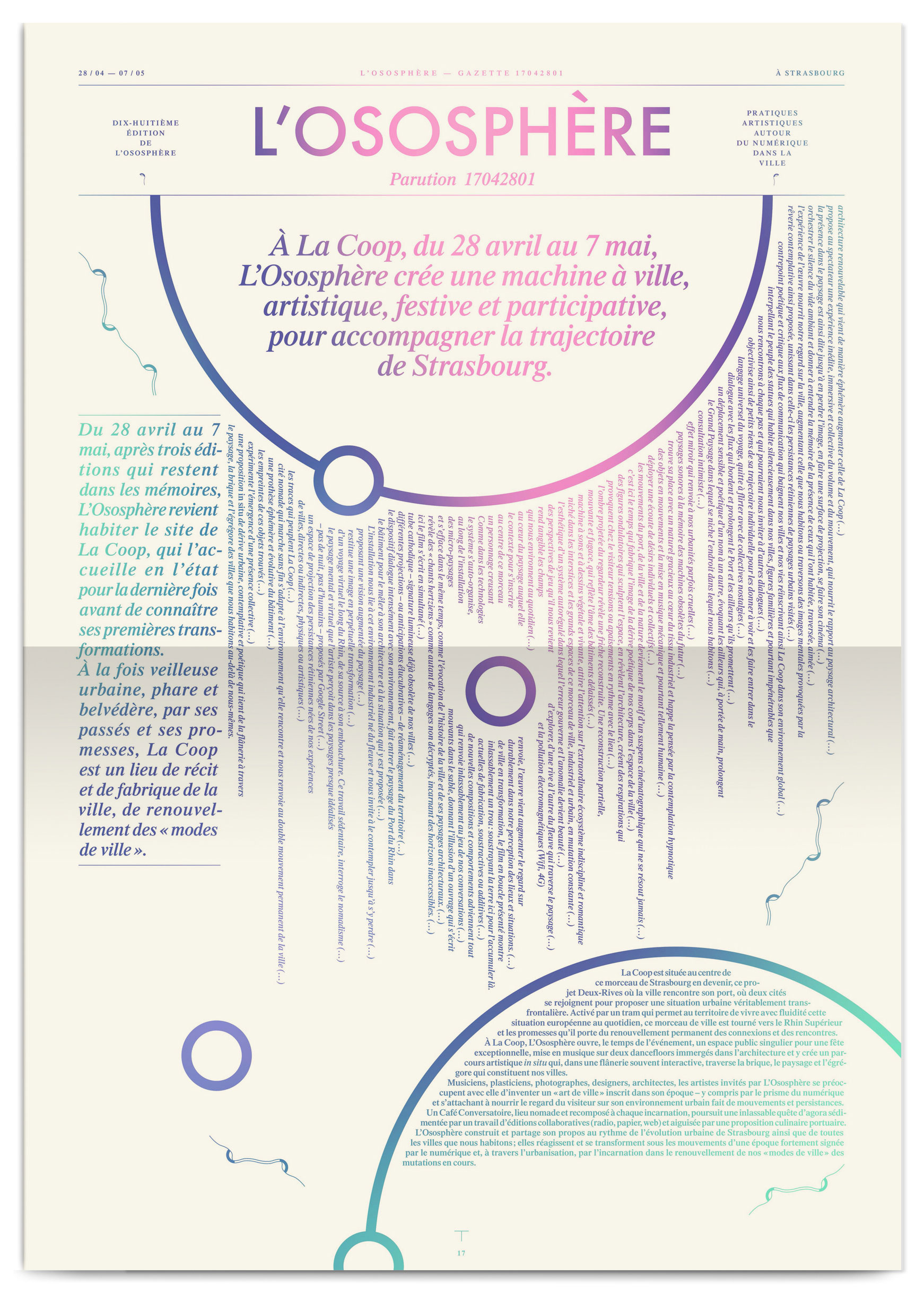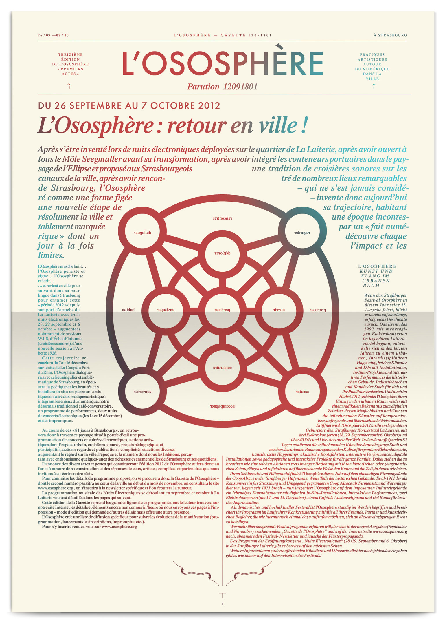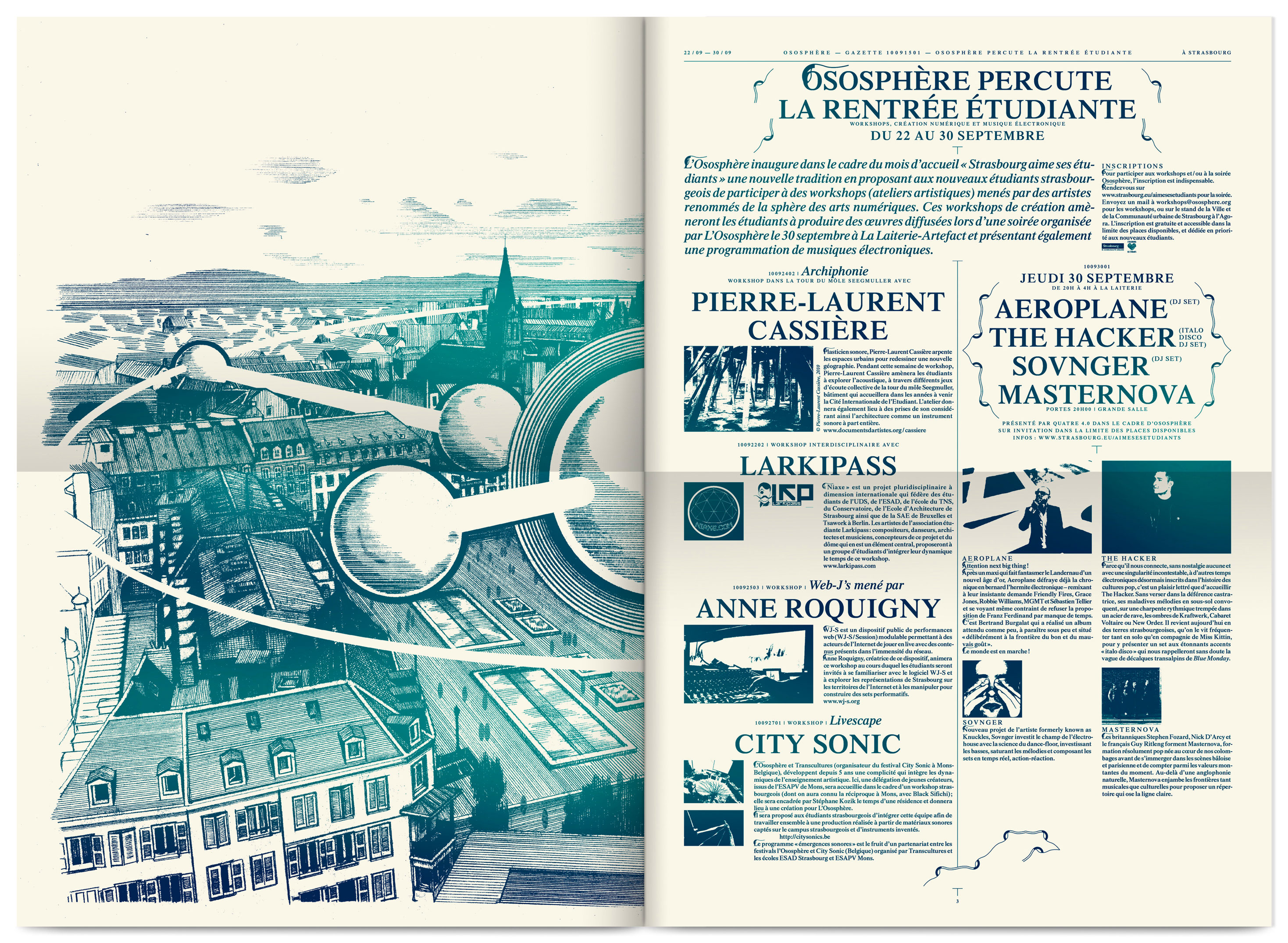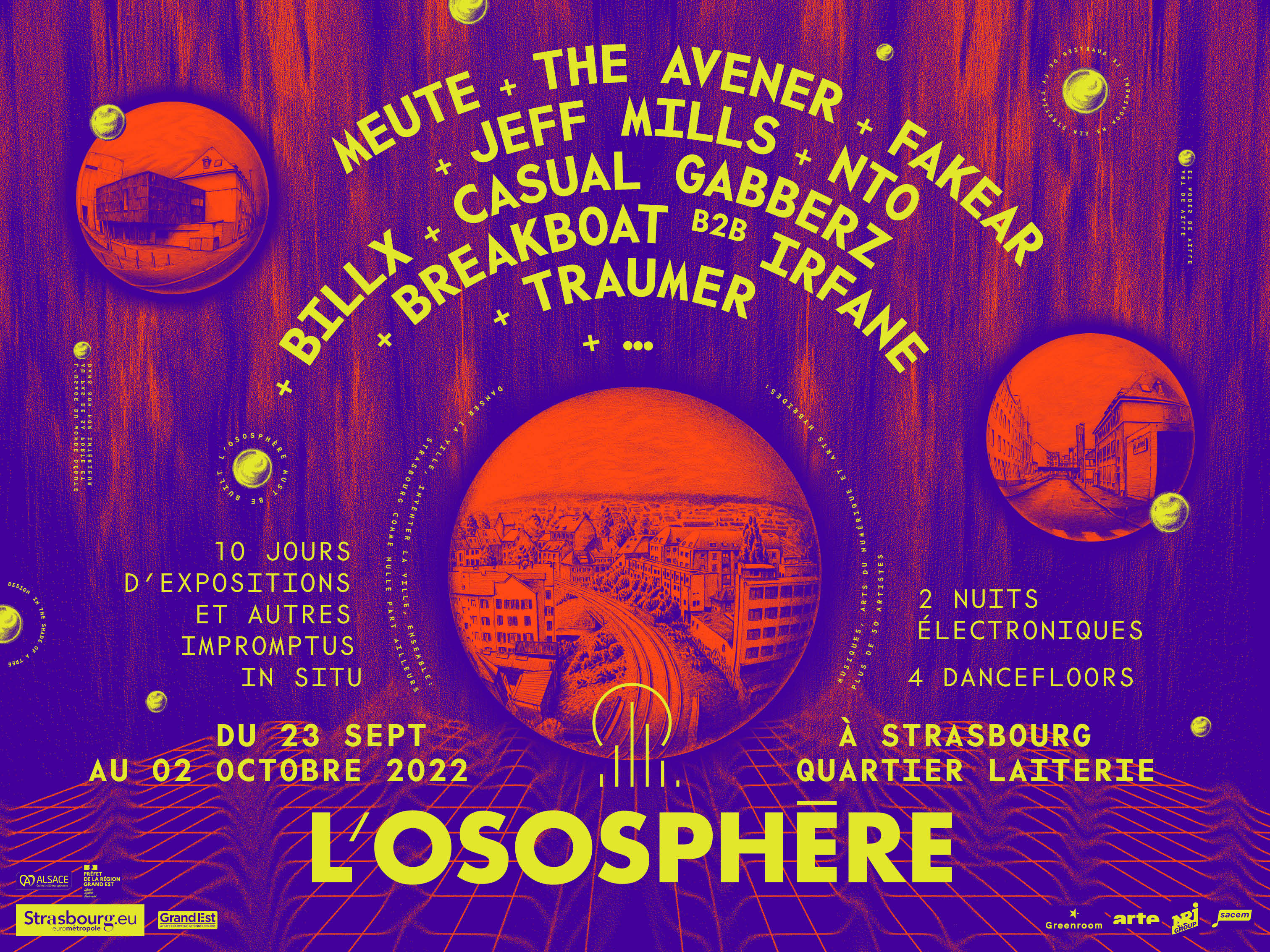 L’Ososphère is a Strasbourg-based festival bringing together electronic music and digital art for thirty years. We have been art directing the festival’s identity since 2010. This long lasting relationship has led to the production of numerous drawings of the various locations where the festival has taken place. We see this gesture both as a recording of a mutating city and its urban landscape, and as a manifestation of its multiple activations by the artists, the visitors, the residents.