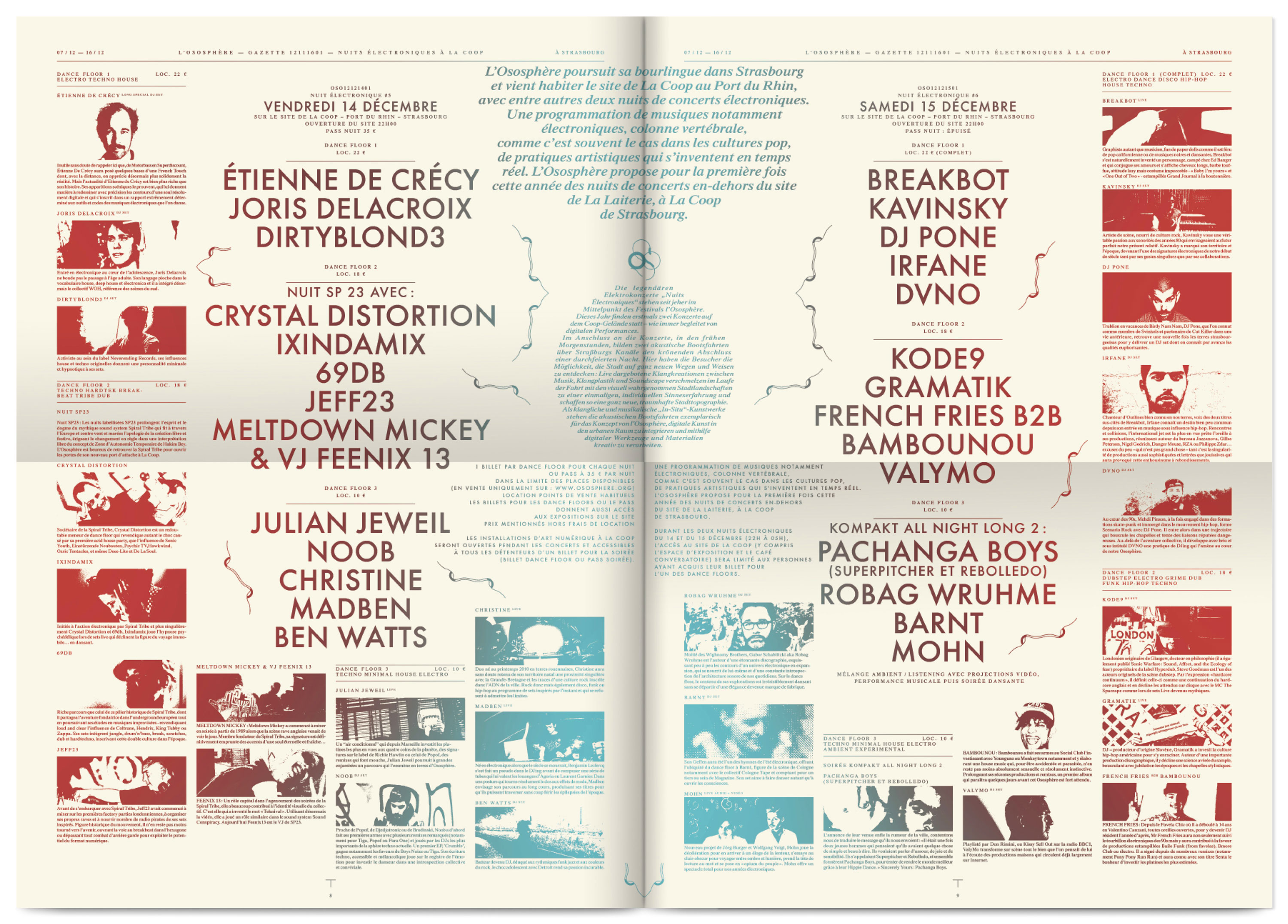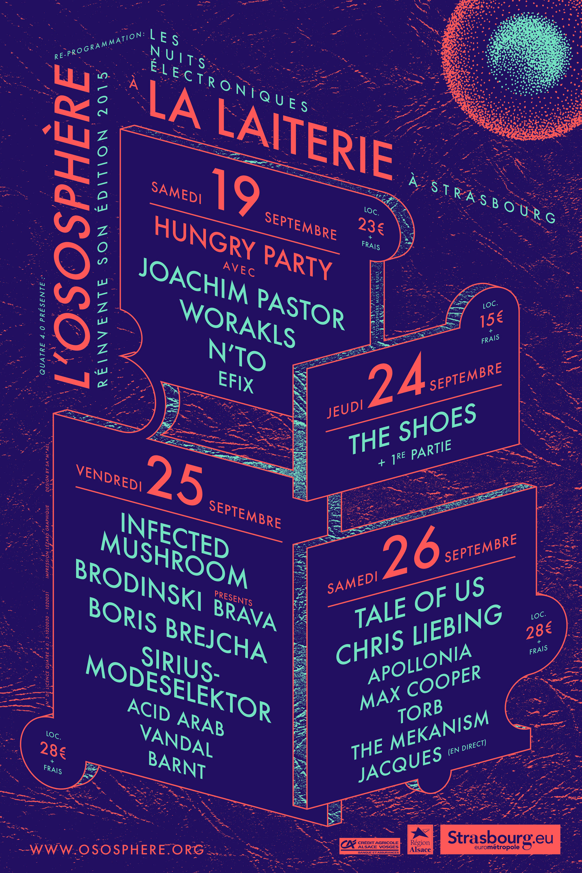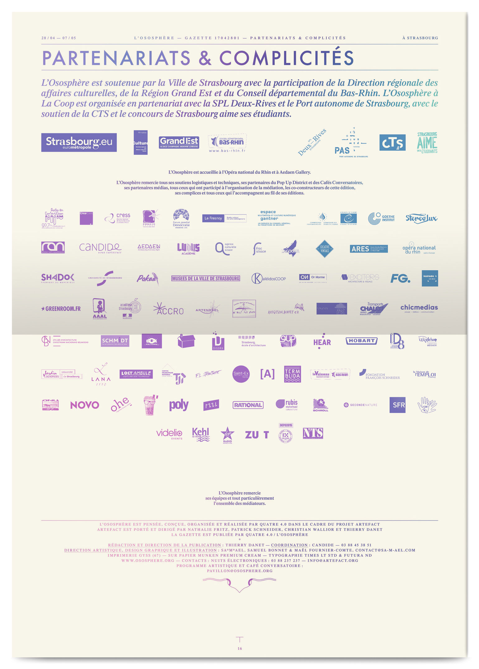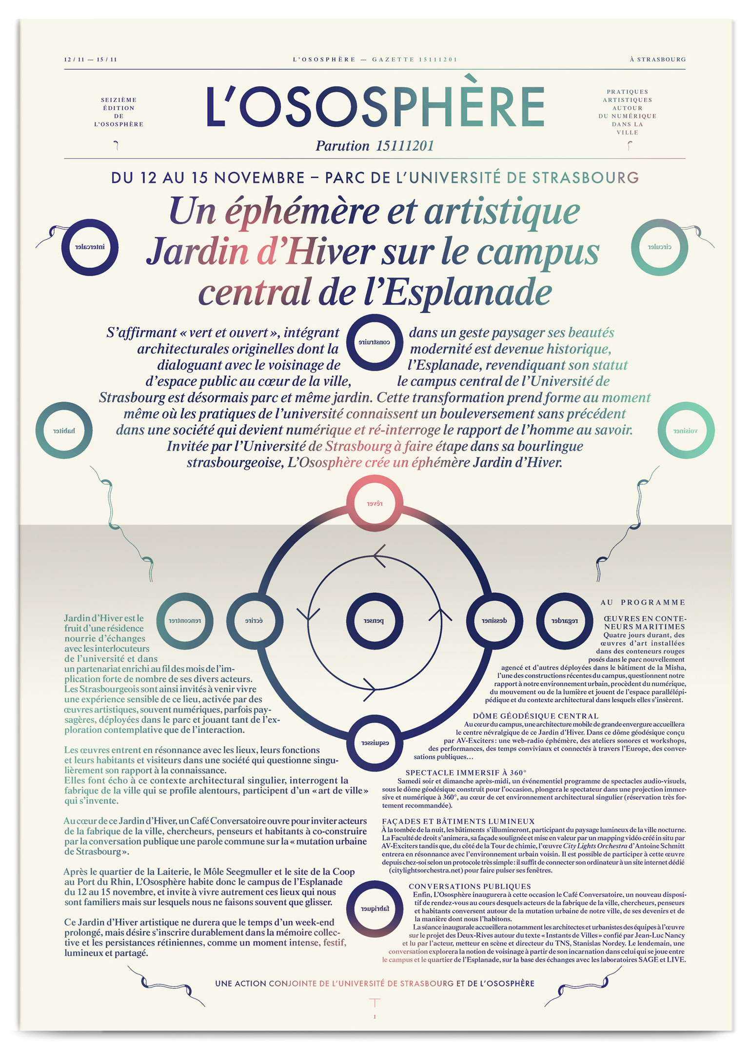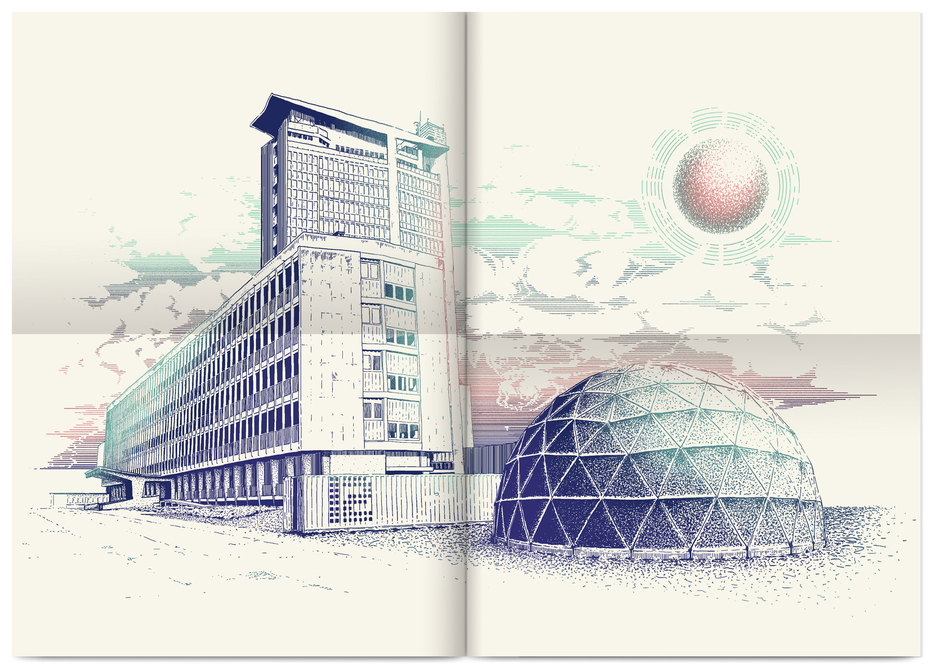 L’Ososphère is a Strasbourg-based festival bringing together electronic music and digital art for thirty years. We have been art directing the festival’s identity since 2010. This long lasting relationship has led to the production of numerous drawings of the various locations where the festival has taken place. We see this gesture both as a recording of a mutating city and its urban landscape, and as a manifestation of its multiple activations by the artists, the visitors, the residents.