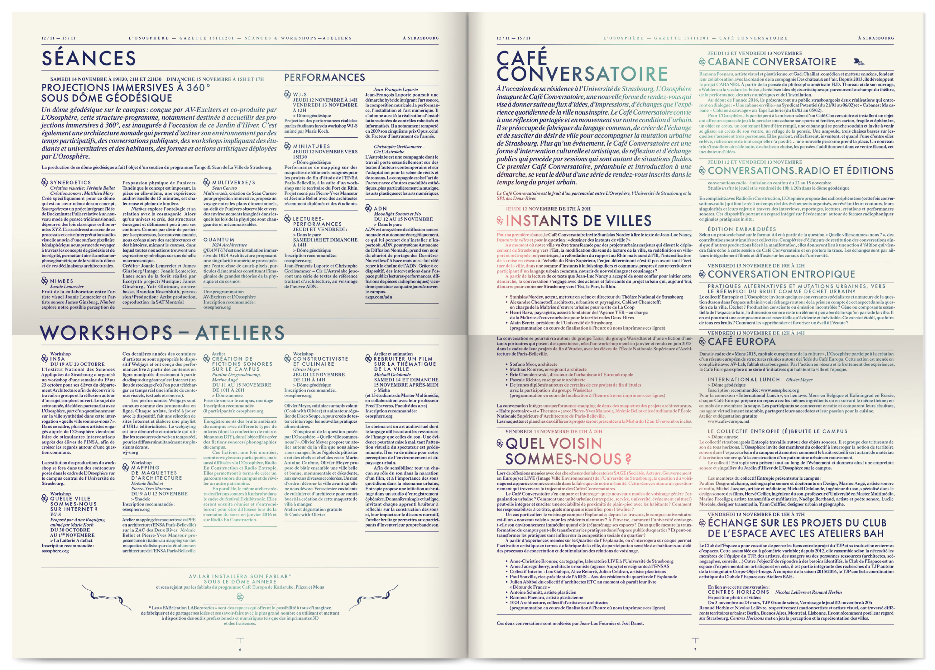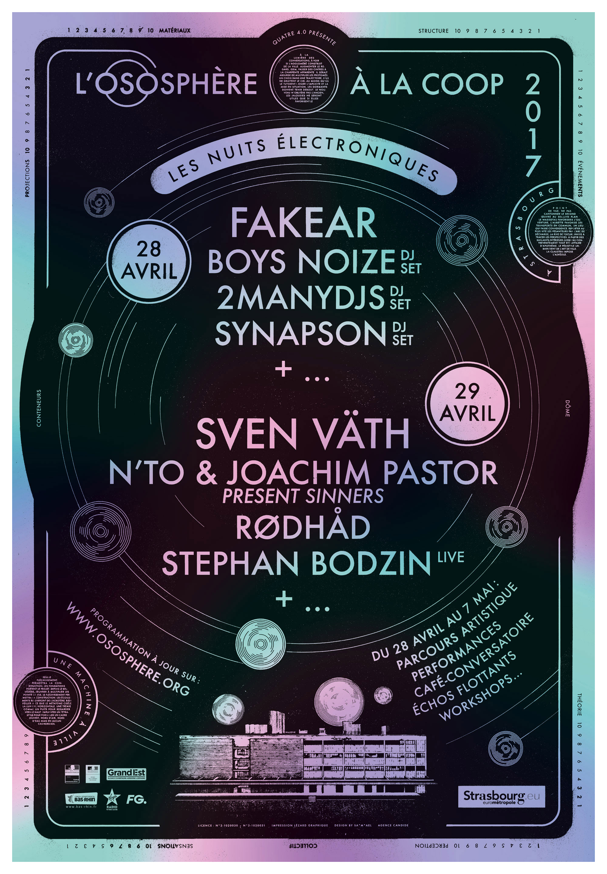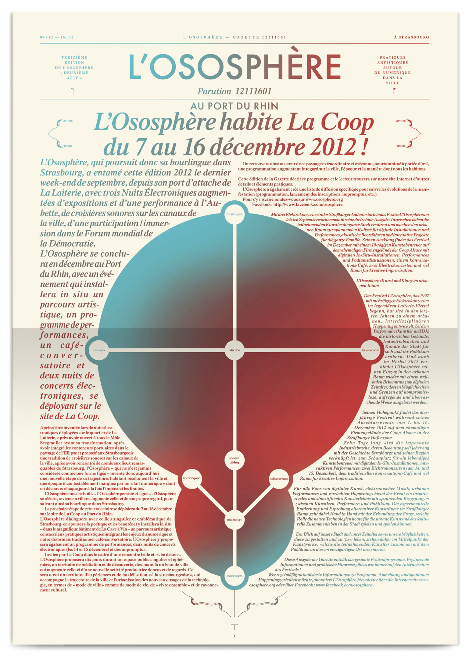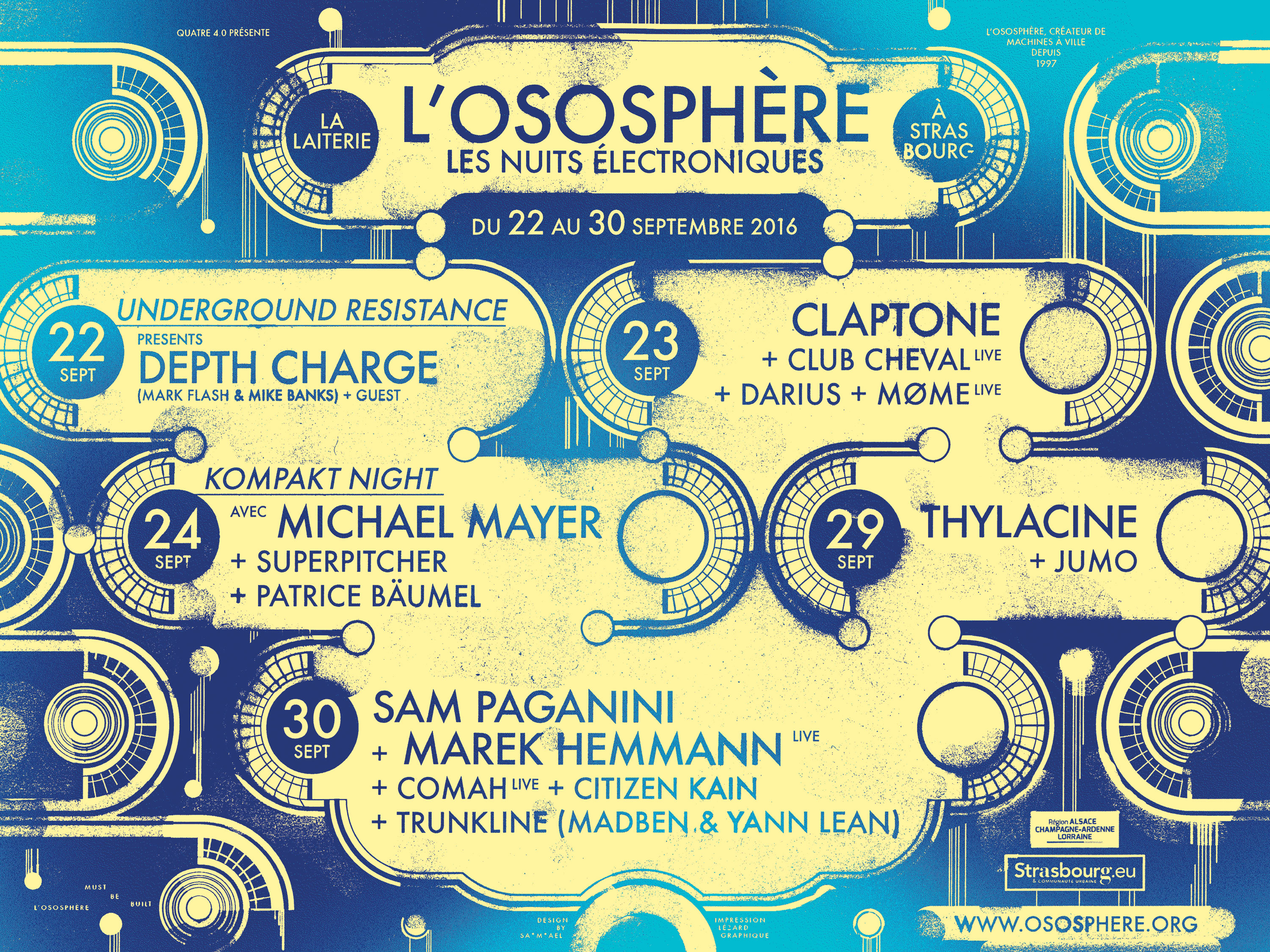 L’Ososphère is a Strasbourg-based festival bringing together electronic music and digital art for thirty years. We have been art directing the festival’s identity since 2010. This long lasting relationship has led to the production of numerous drawings of the various locations where the festival has taken place. We see this gesture both as a recording of a mutating city and its urban landscape, and as a manifestation of its multiple activations by the artists, the visitors, the residents.