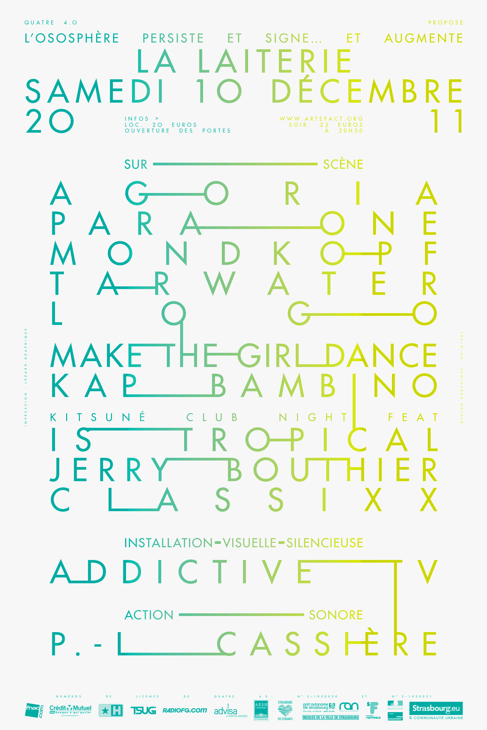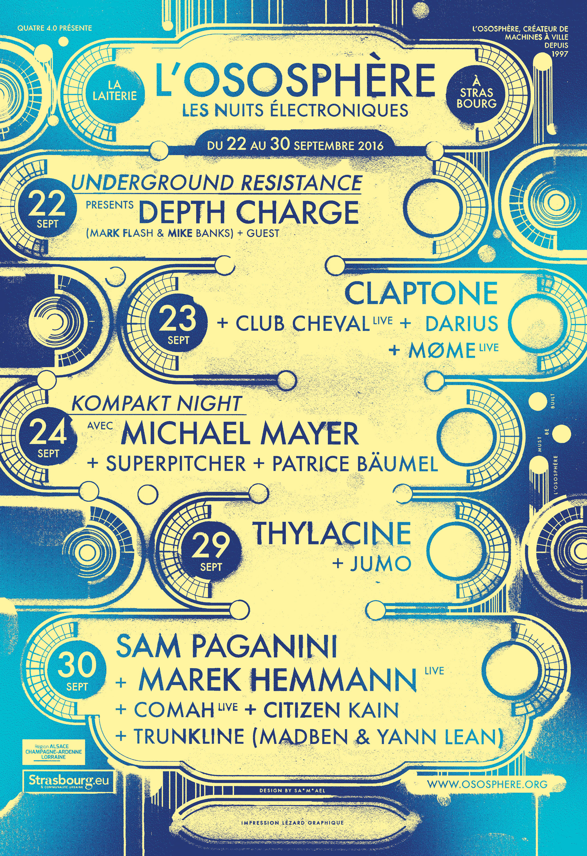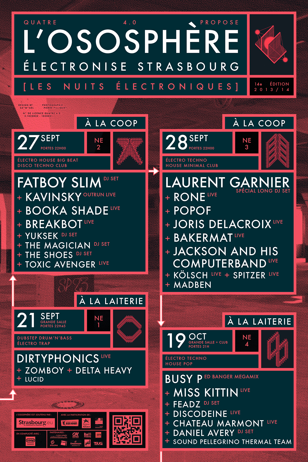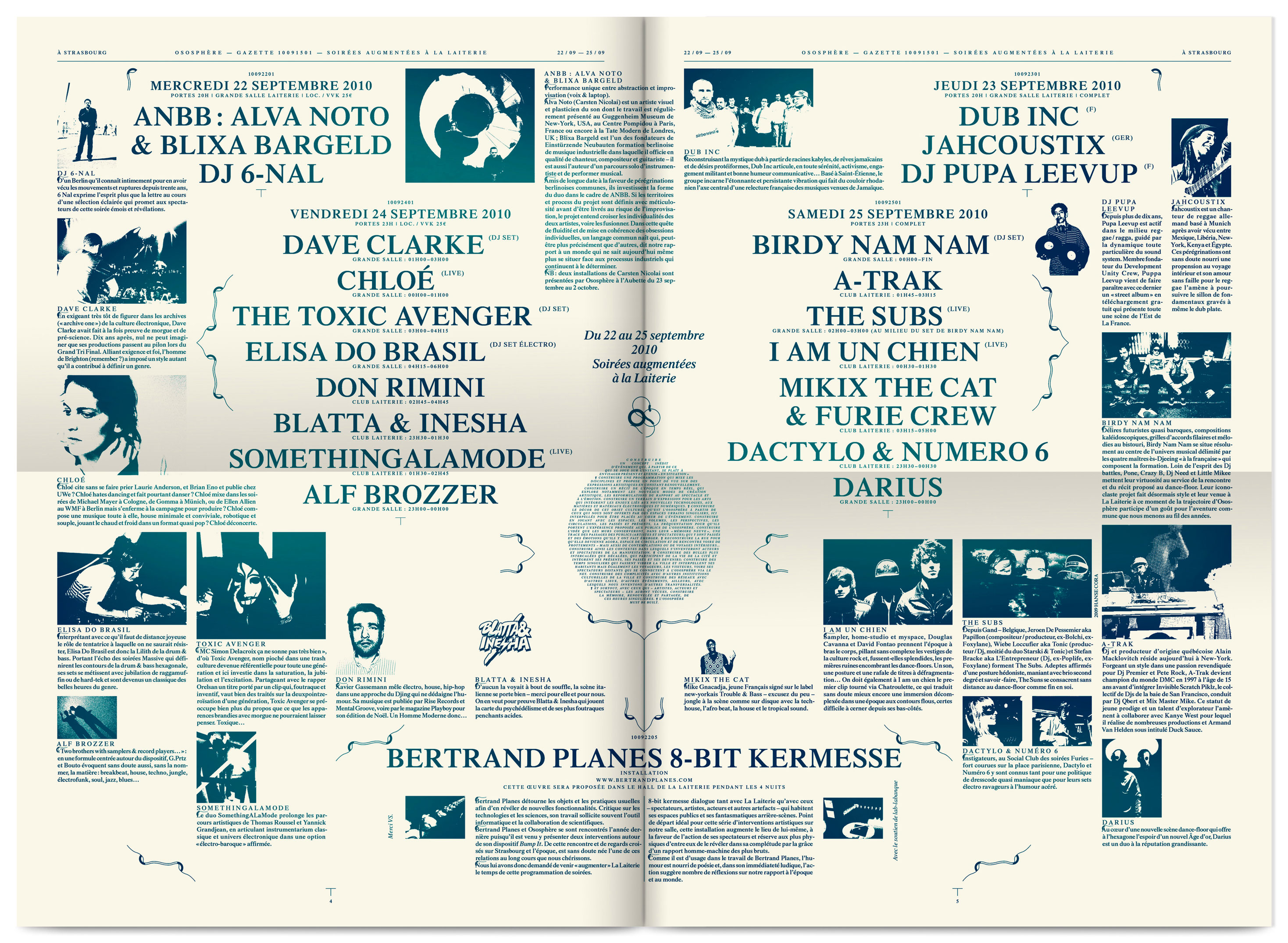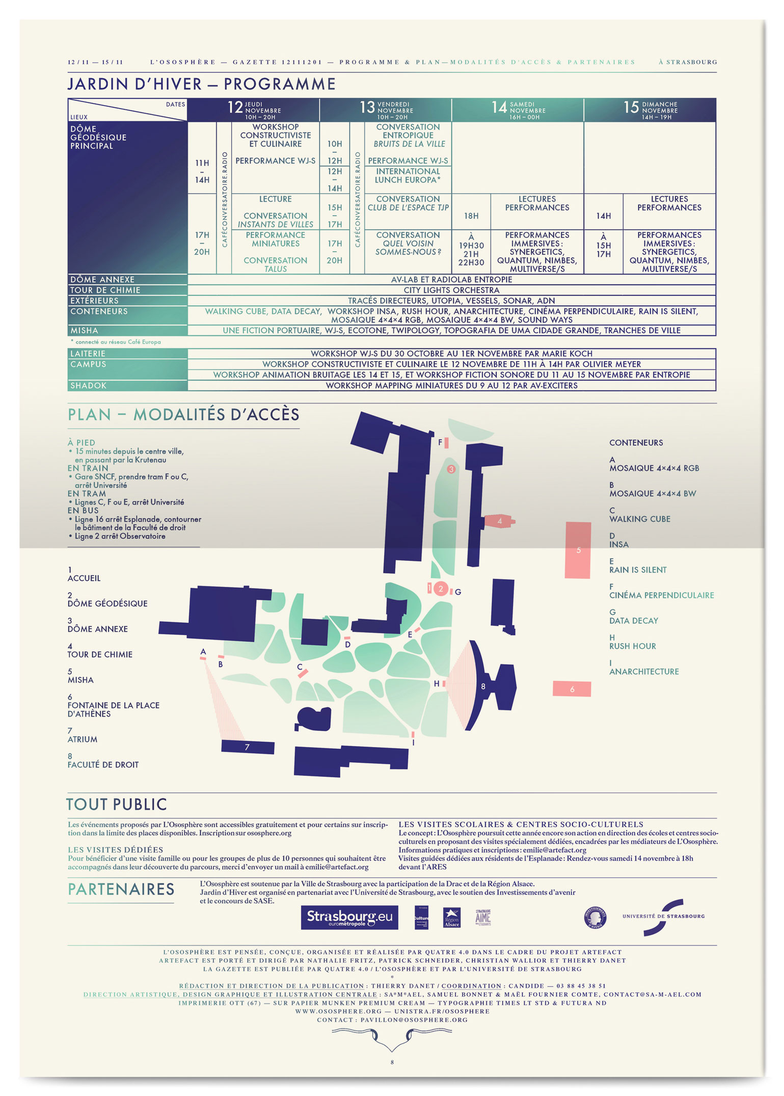 L’Ososphère is a Strasbourg-based festival bringing together electronic music and digital art for thirty years. We have been art directing the festival’s identity since 2010. This long lasting relationship has led to the production of numerous drawings of the various locations where the festival has taken place. We see this gesture both as a recording of a mutating city and its urban landscape, and as a manifestation of its multiple activations by the artists, the visitors, the residents.
