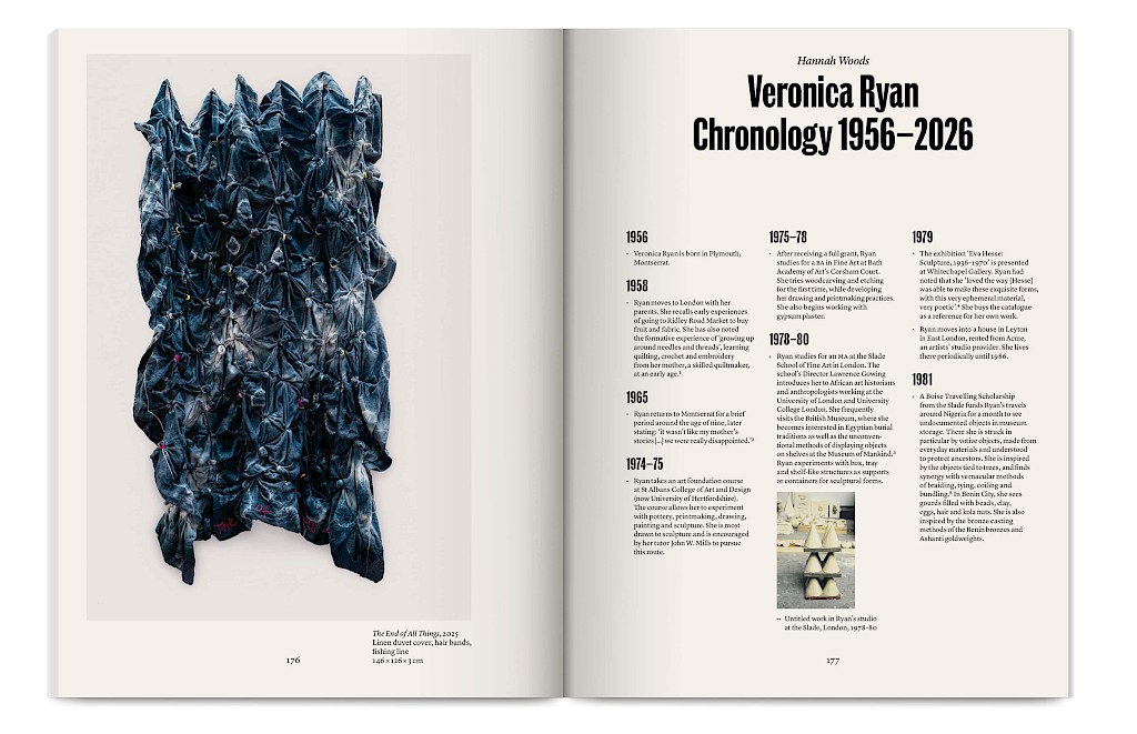 The exhibition Veronica Ryan: Multiple Conversations, at the Whitechapel Gallery is the artist’s most extensive presentation to date. We designed the monograph accompanying the exhibition. Spanning four decades, it reflects the full spectrum of her practice and multifaceted work across sculpture, textiles and works on paper.