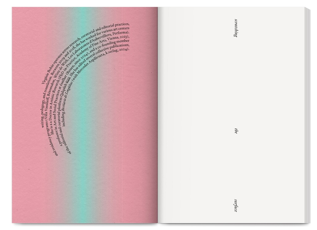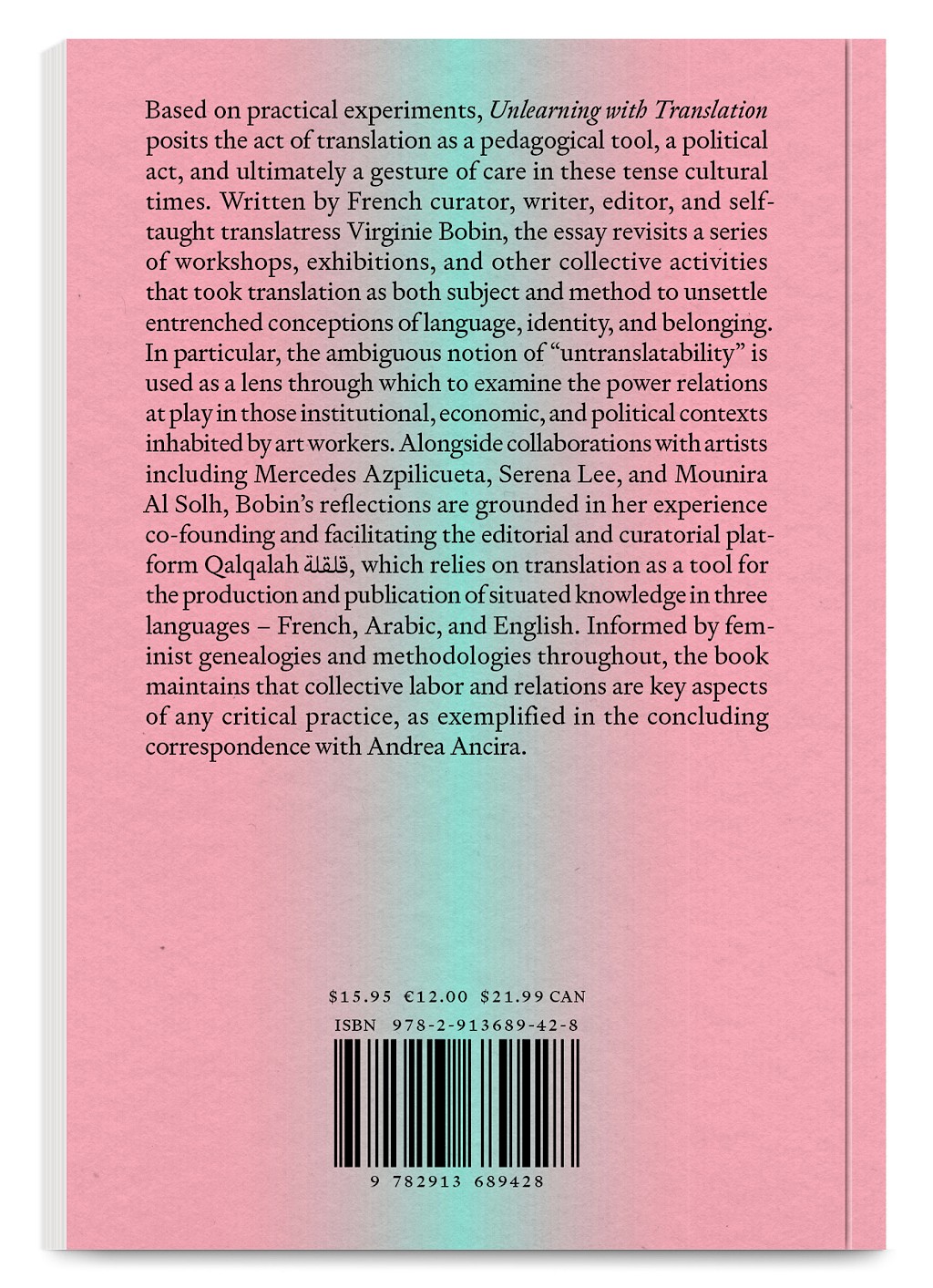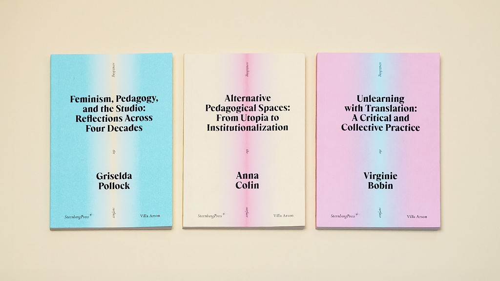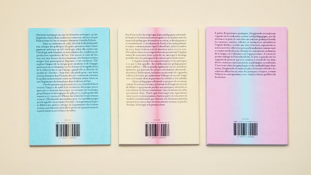 The collection comprises a series of three affordable books (10×15 cm). The inaugural set brings together insightful texts by Griselda Pollock, Anna Colin, and Virginie Bobin. Each book uses two colours, passing one to the next as legacy — treating colour as knowledge, where no book begins on a blank canvas but continues the dialogue from its predecessor.