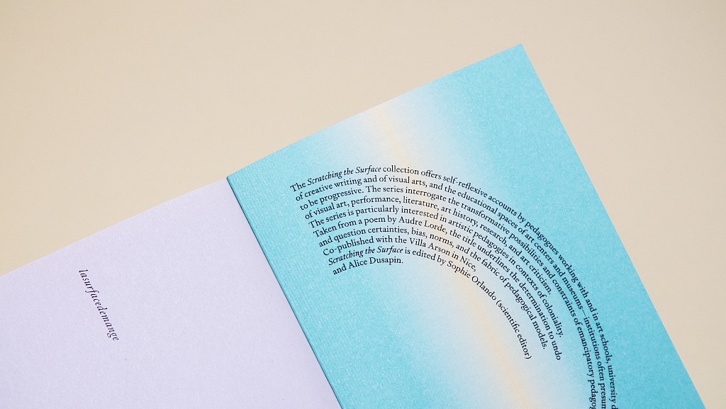 Scratching the Surface series interrogates the transformative possibilities and constraints of emancipatory pedagogies in the fields of visual art, performance, literature, art history, research, and art criticism. Taken from a poem by Audre Lorde, the title underlines the determination to undo and question certainties, biases, norms, and the fabric of pedagogical models. The series is particularly interested in artistic pedagogies in contexts of coloniality.